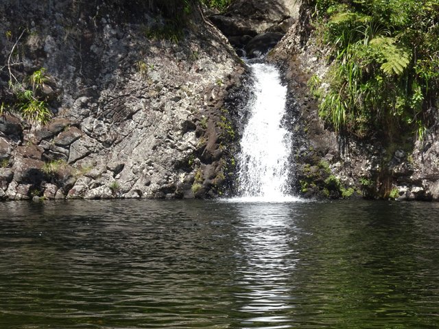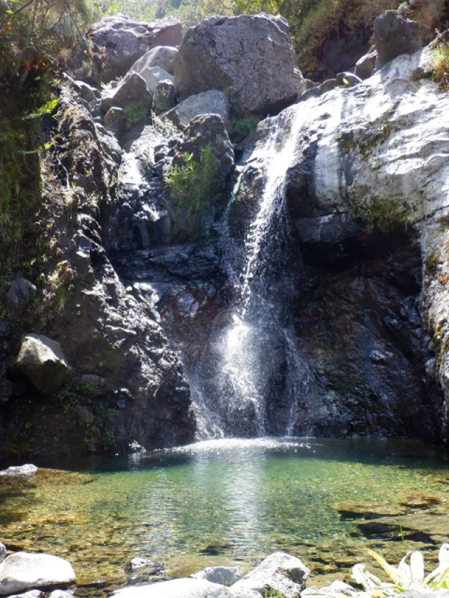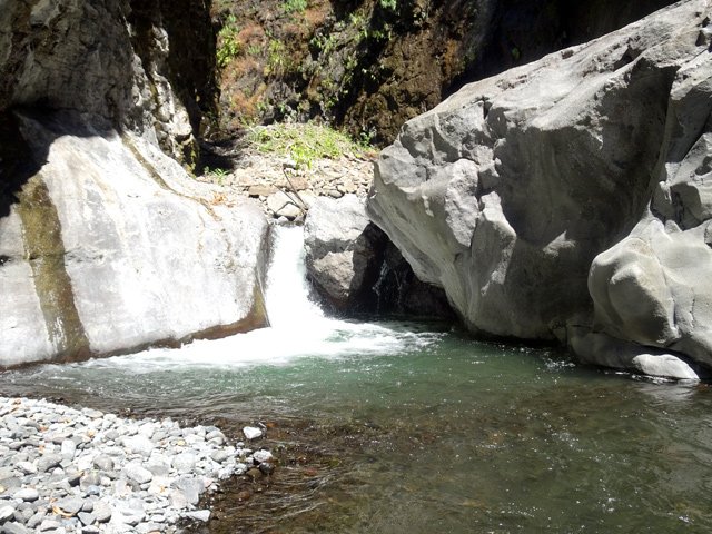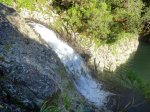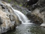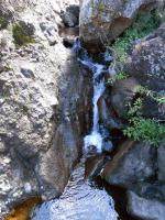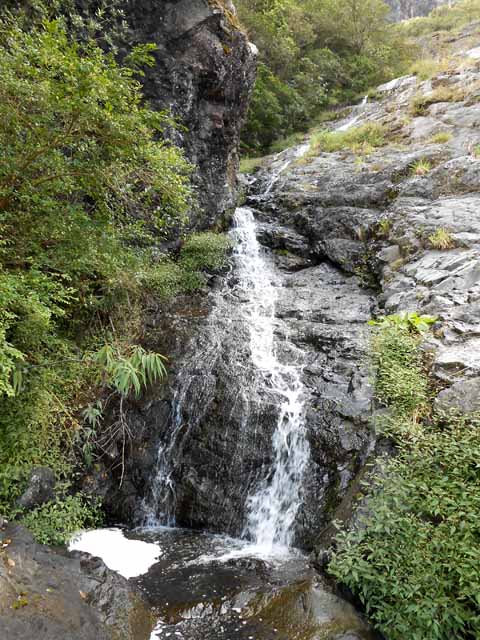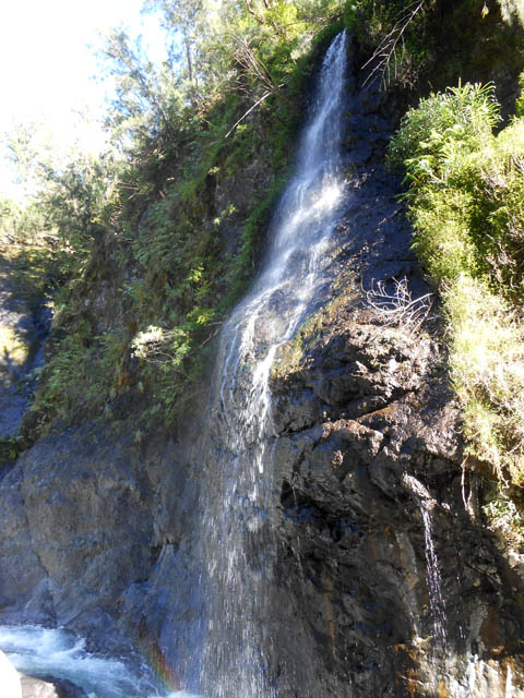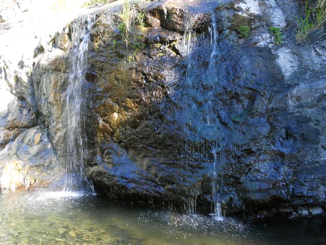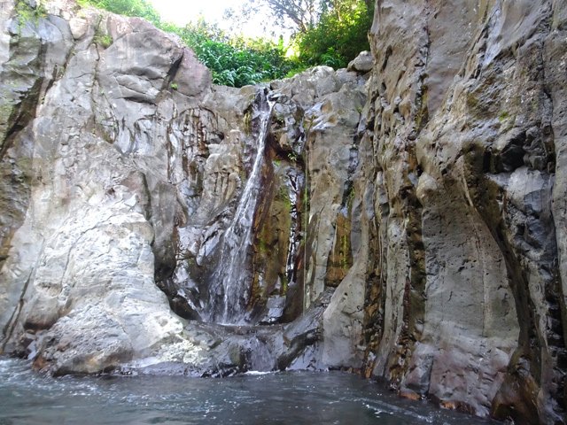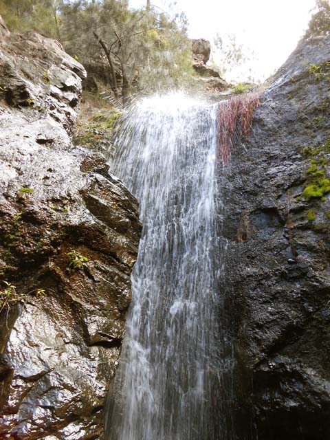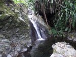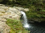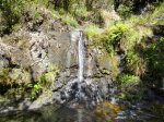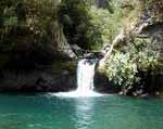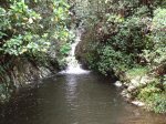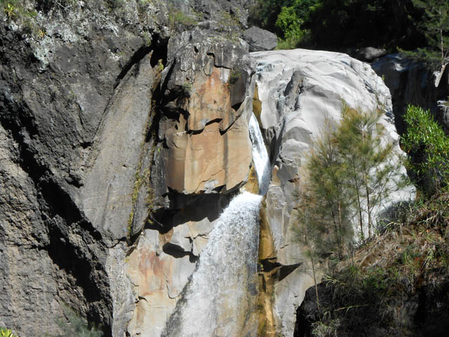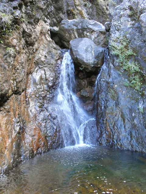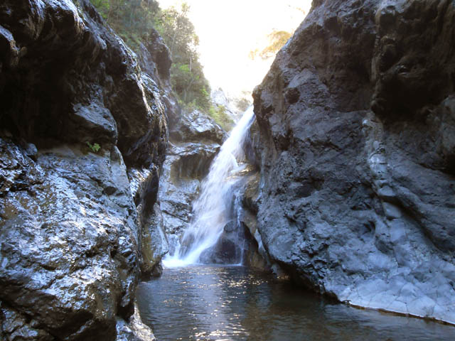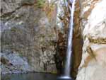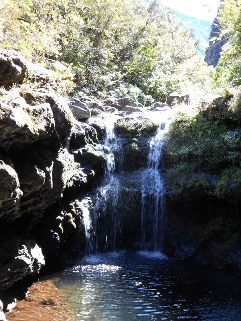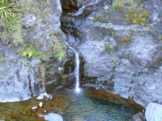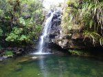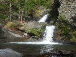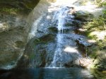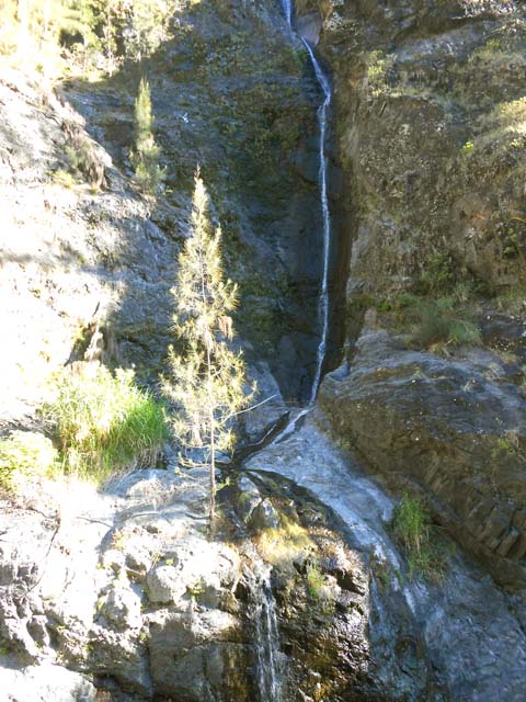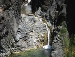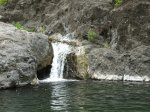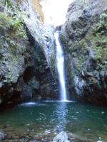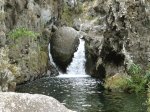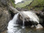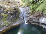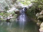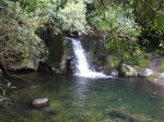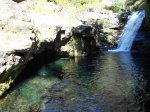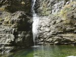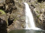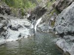 Cette fine cascade tombe à deux pas du sentier. On ne pas se baigner dans le bassin mais il est possible de se doucher sous la fine chute.