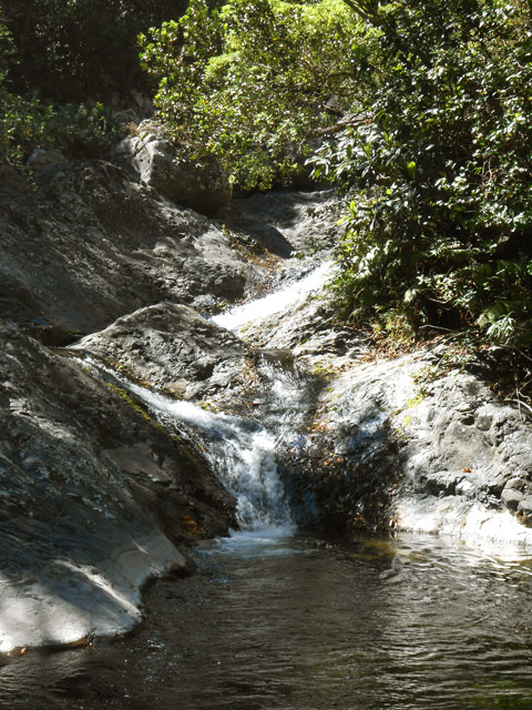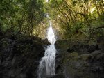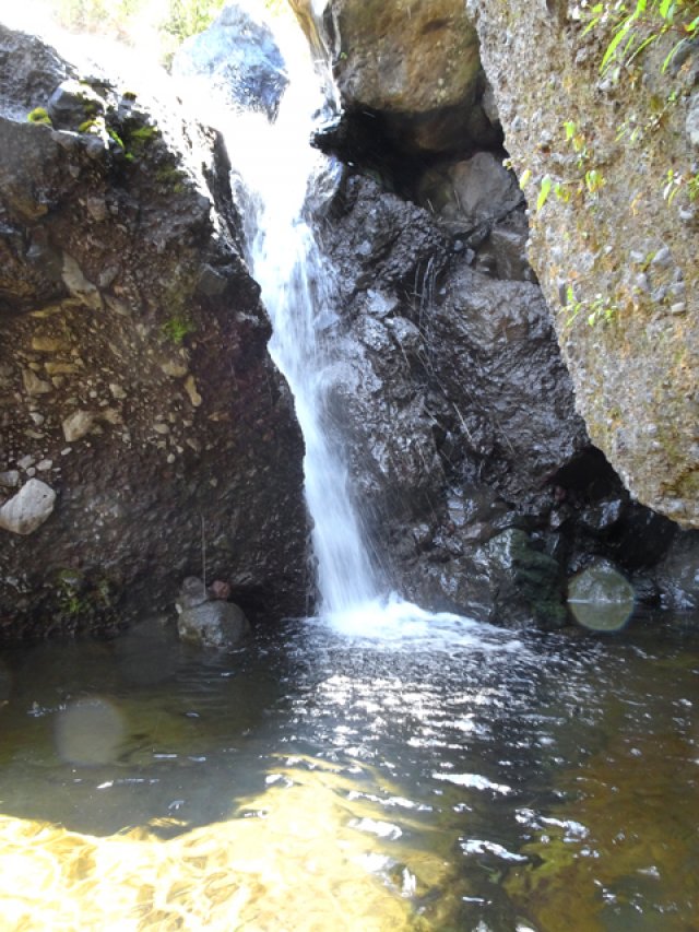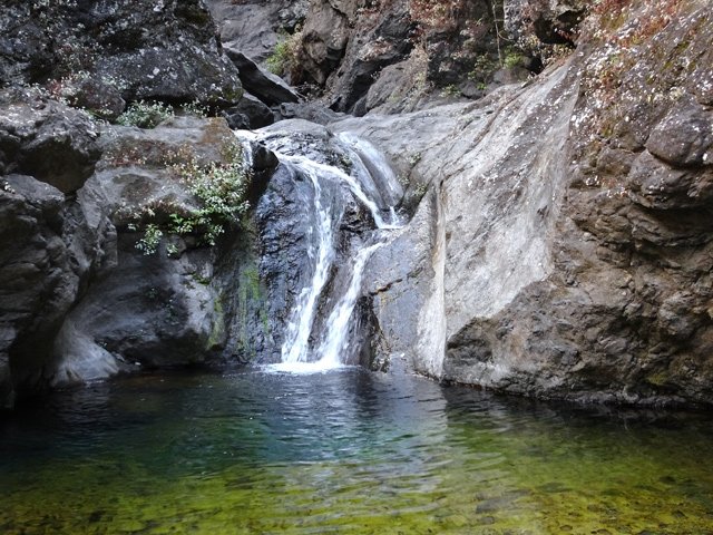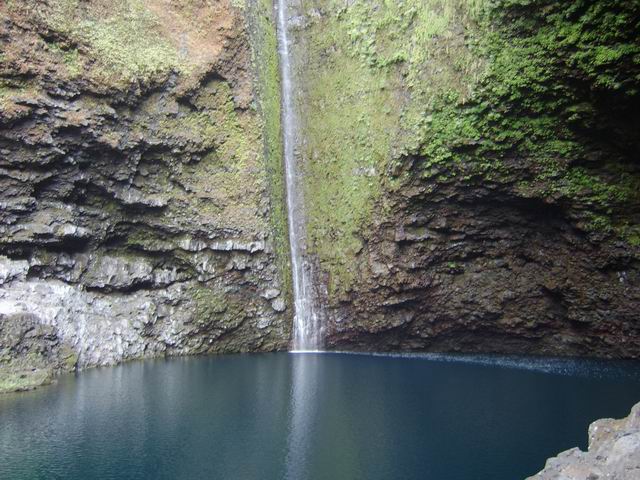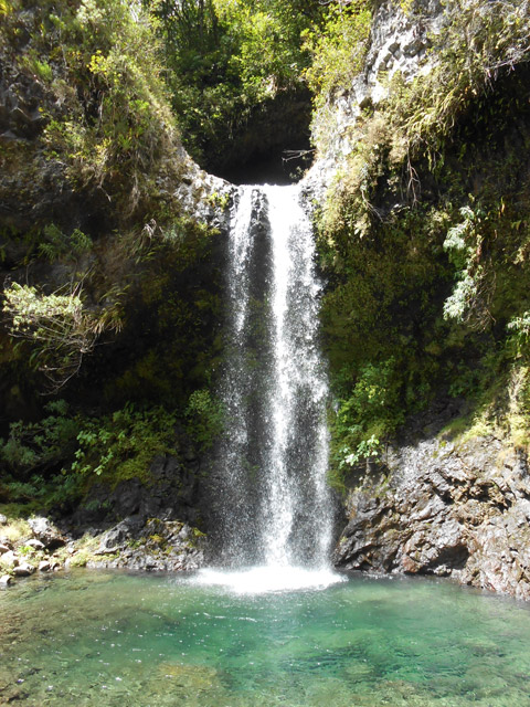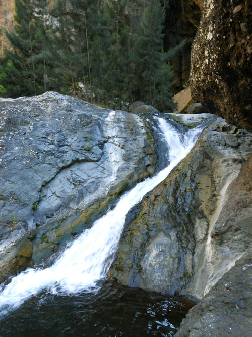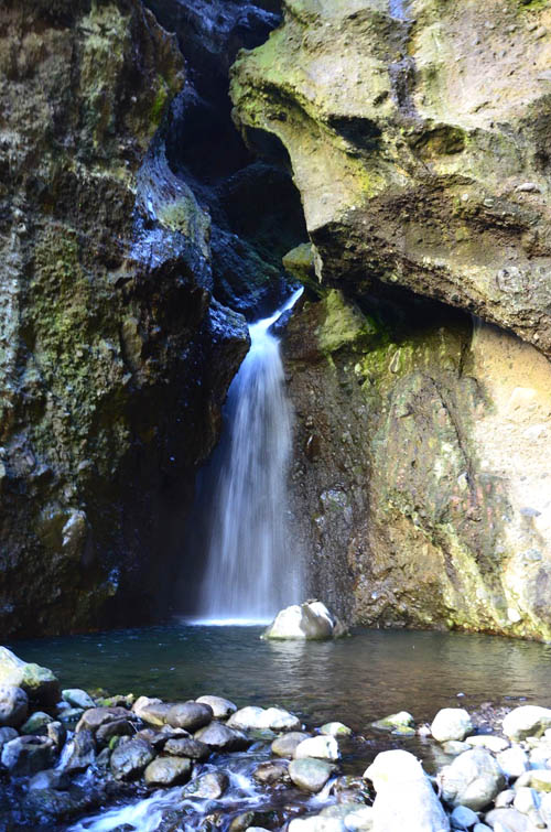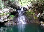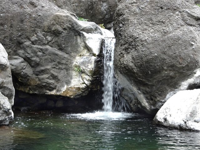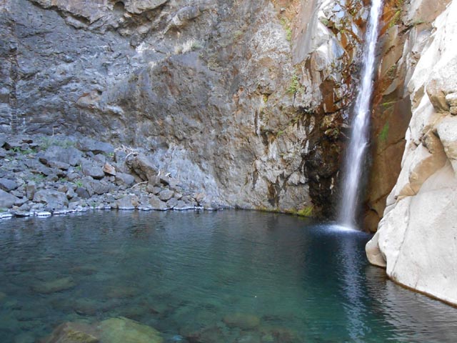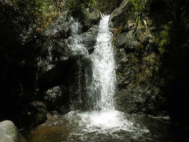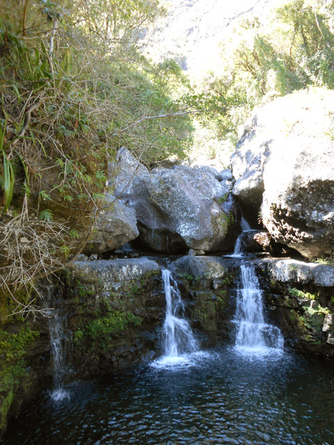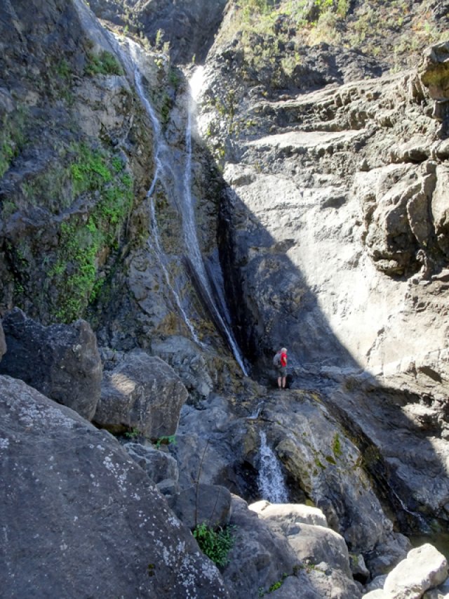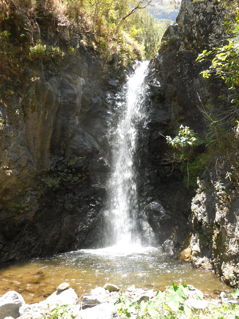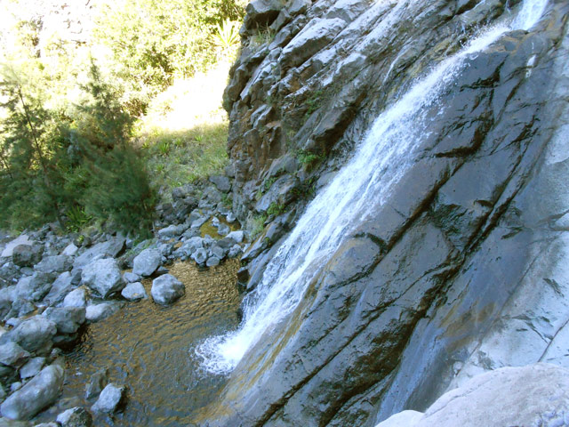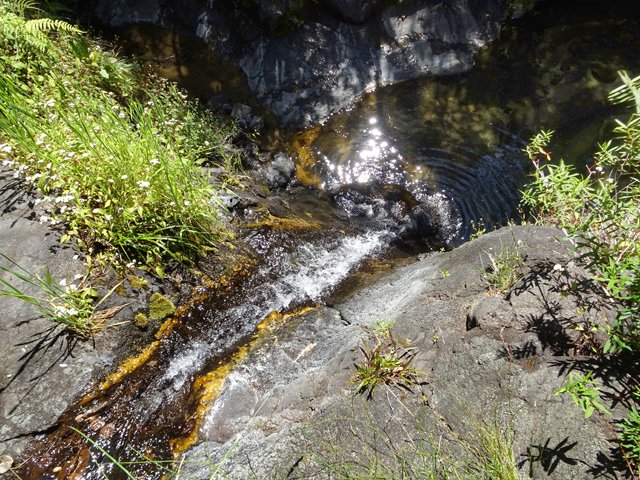 Cette fine cascade tombe à deux pas du sentier. On ne pas se baigner dans le bassin mais il est possible de se doucher sous la fine chute.