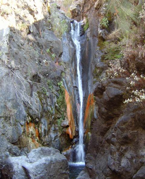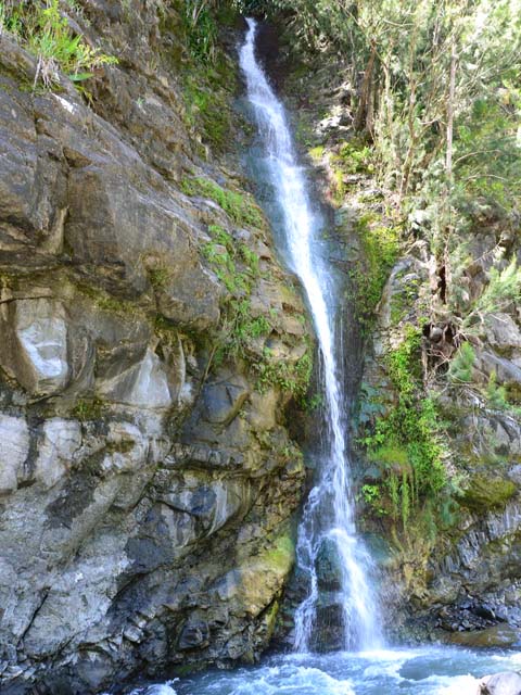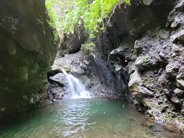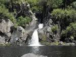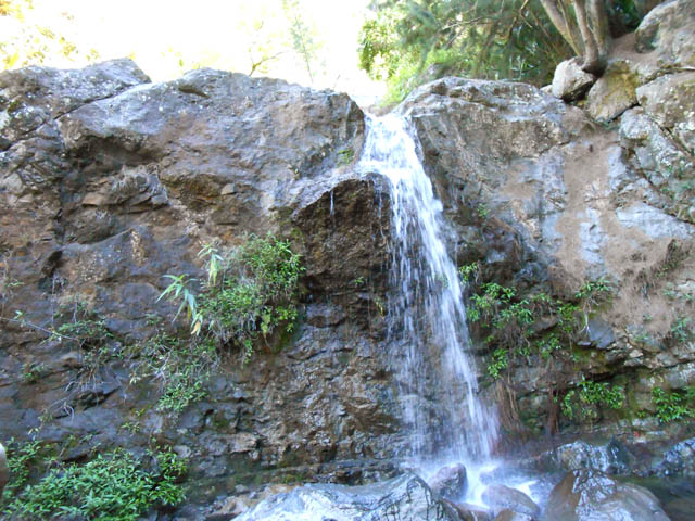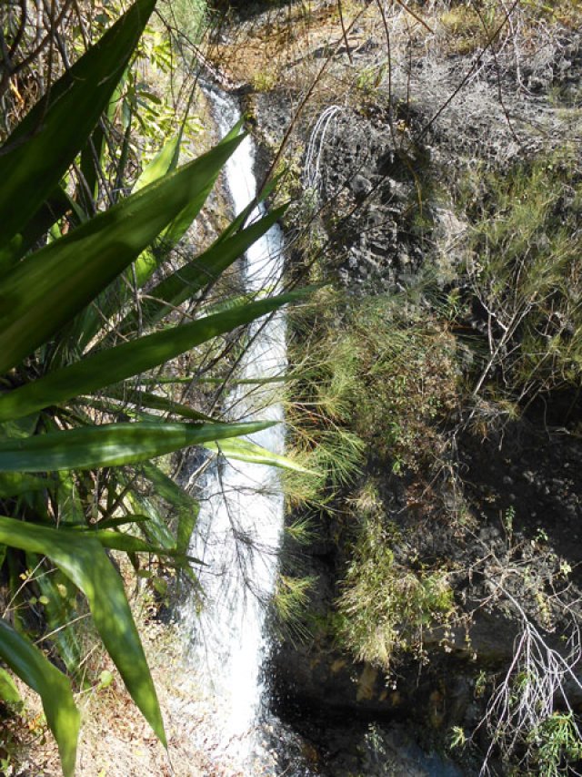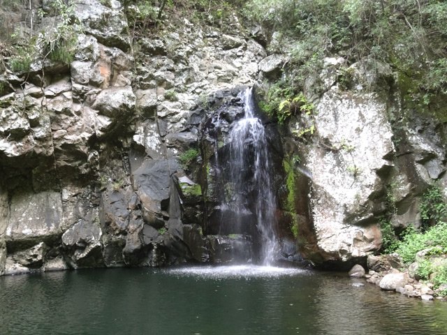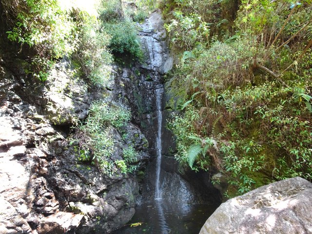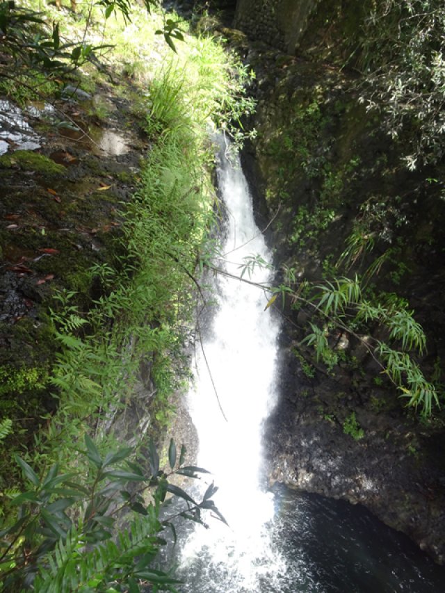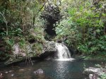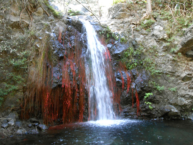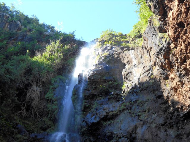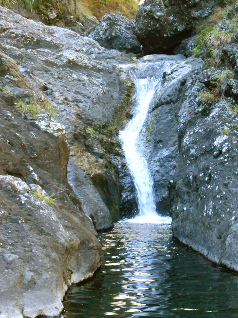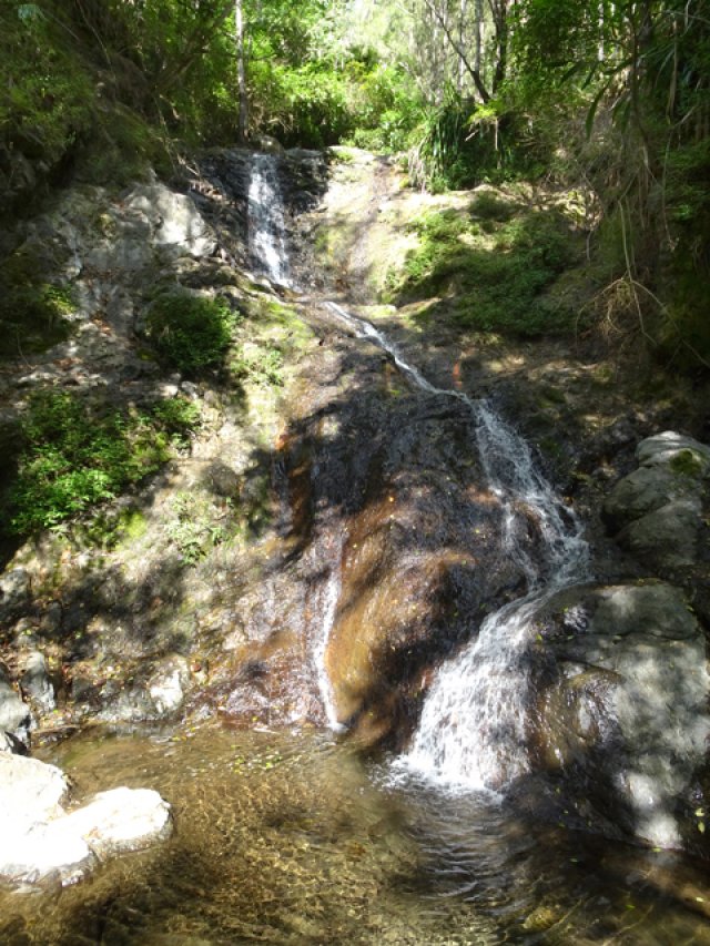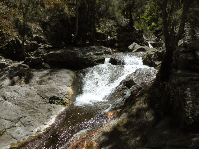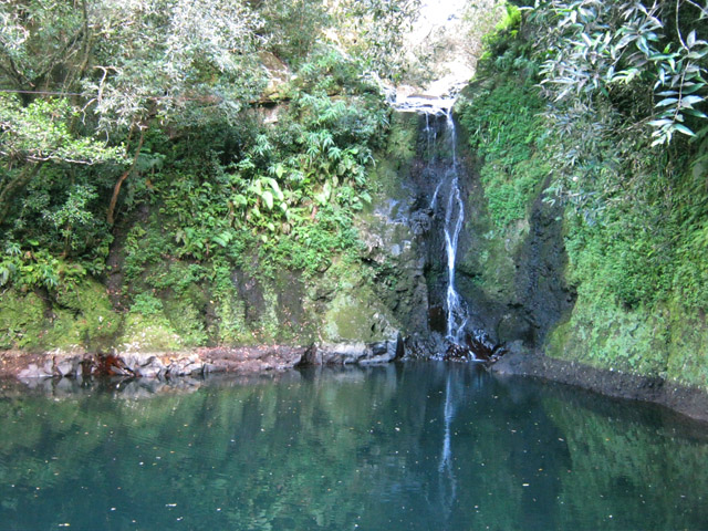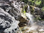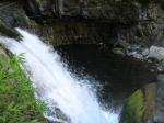 Cette fine cascade tombe à deux pas du sentier. On ne pas se baigner dans le bassin mais il est possible de se doucher sous la fine chute.