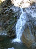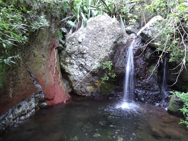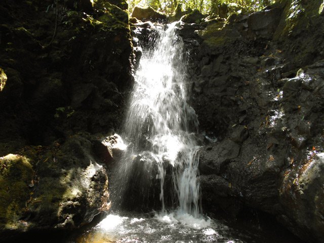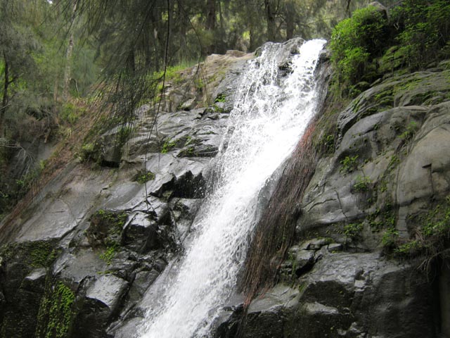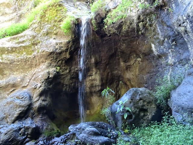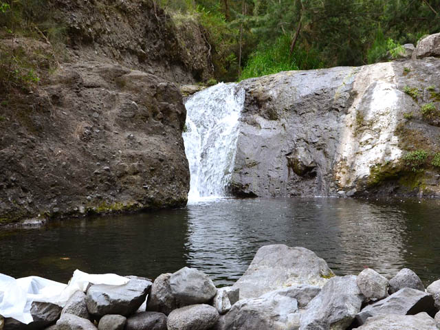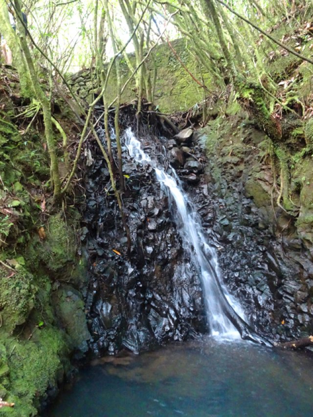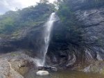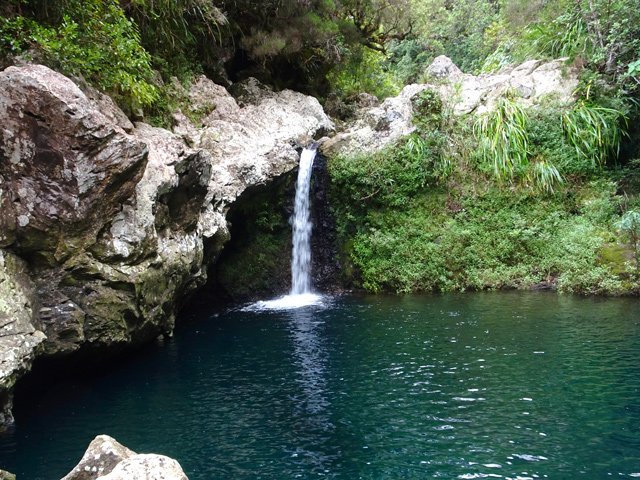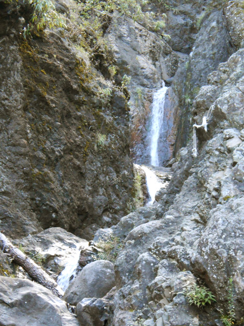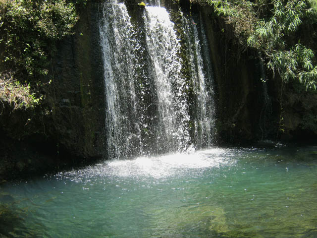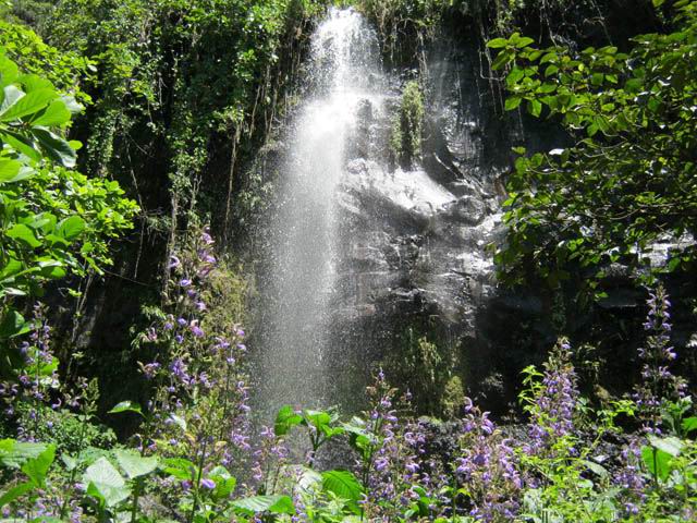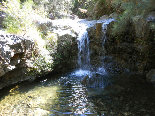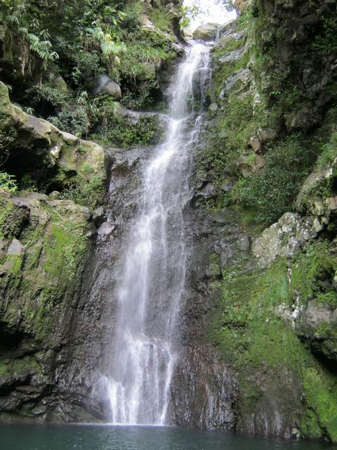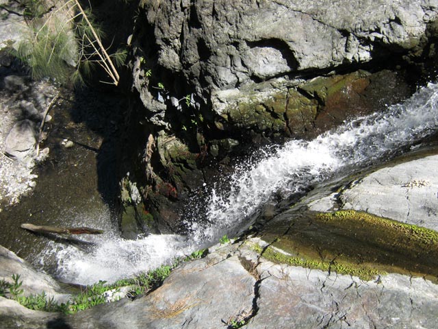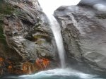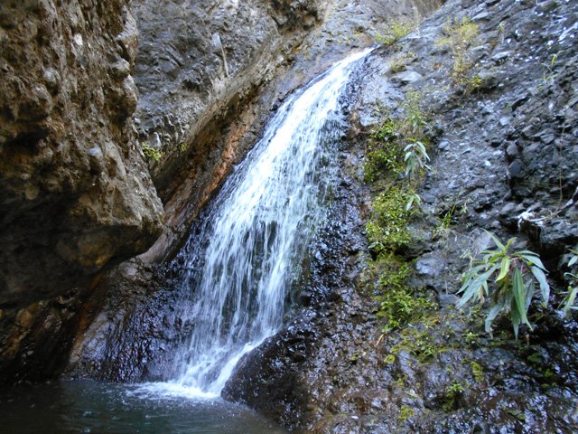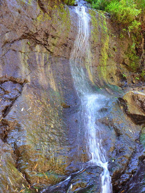 Cette fine cascade tombe à deux pas du sentier. On ne pas se baigner dans le bassin mais il est possible de se doucher sous la fine chute.