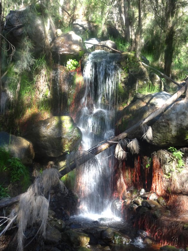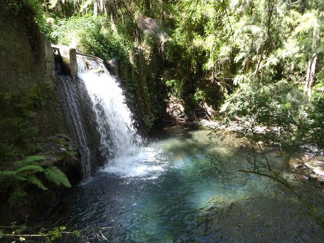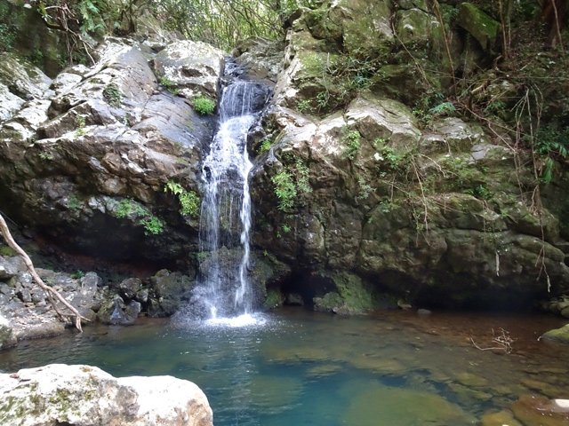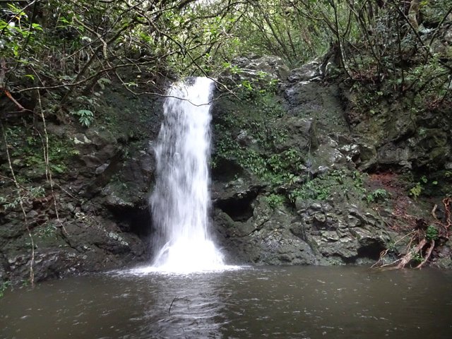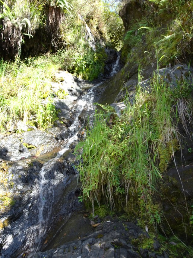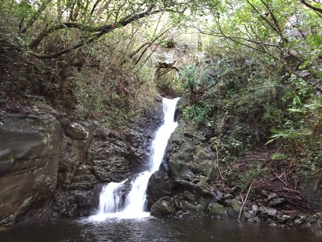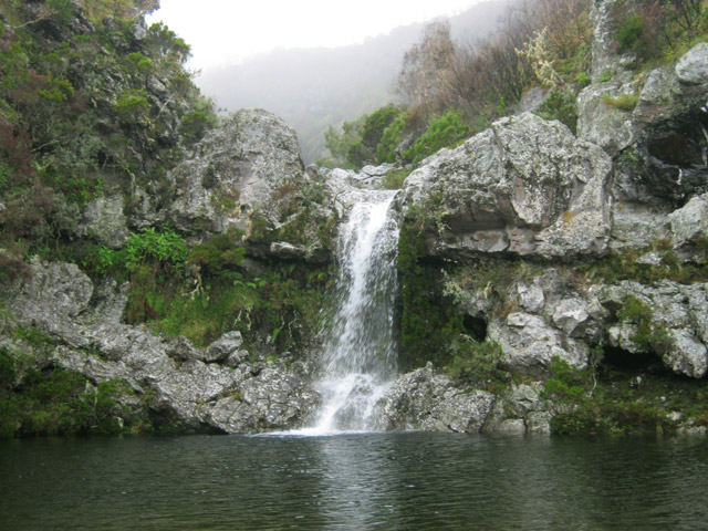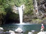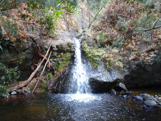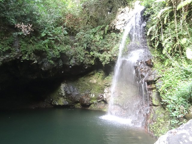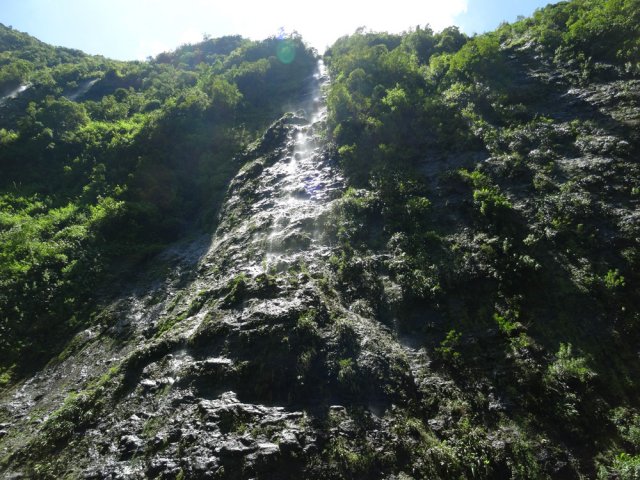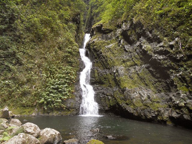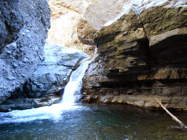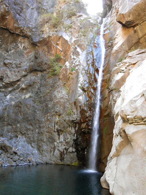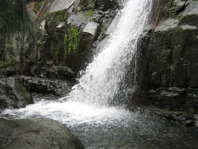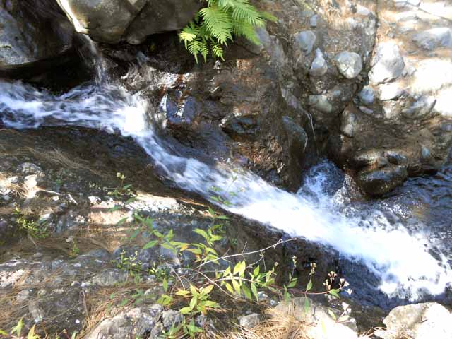 Cette fine cascade tombe à deux pas du sentier. On ne pas se baigner dans le bassin mais il est possible de se doucher sous la fine chute.