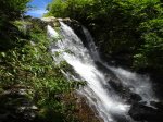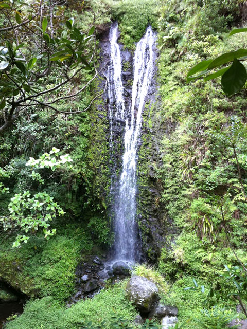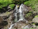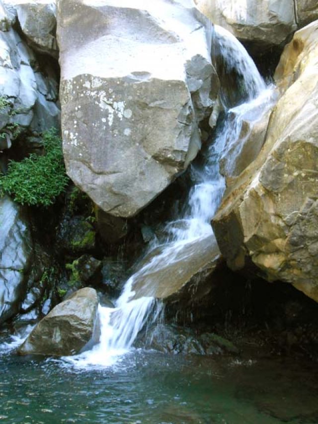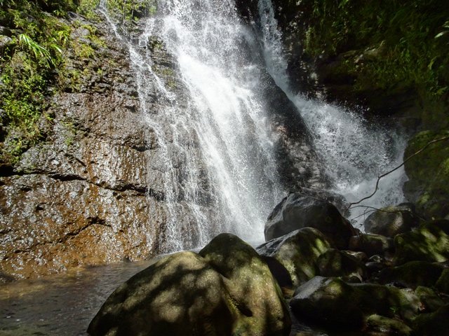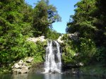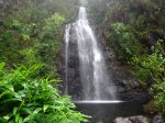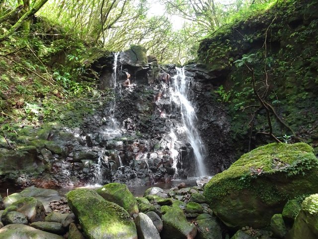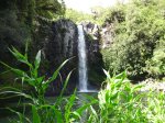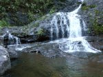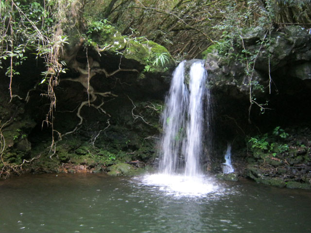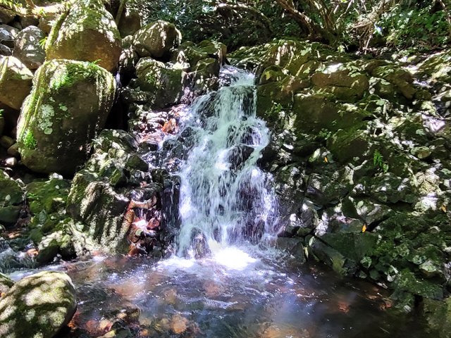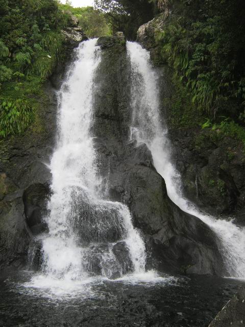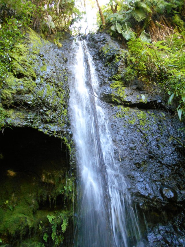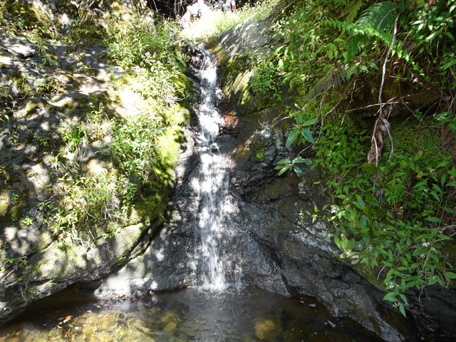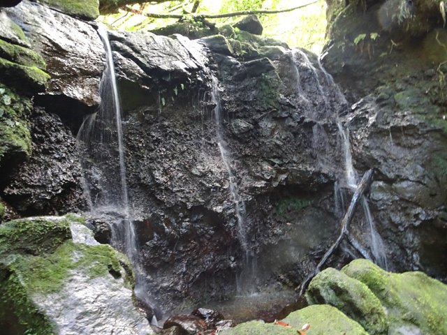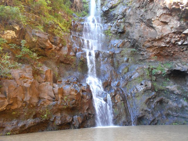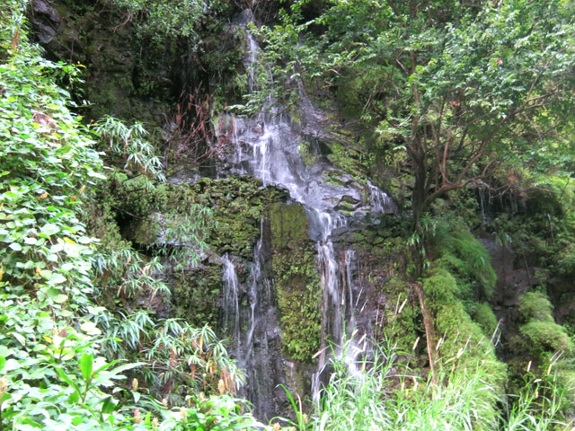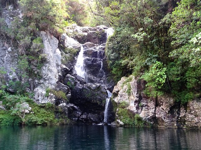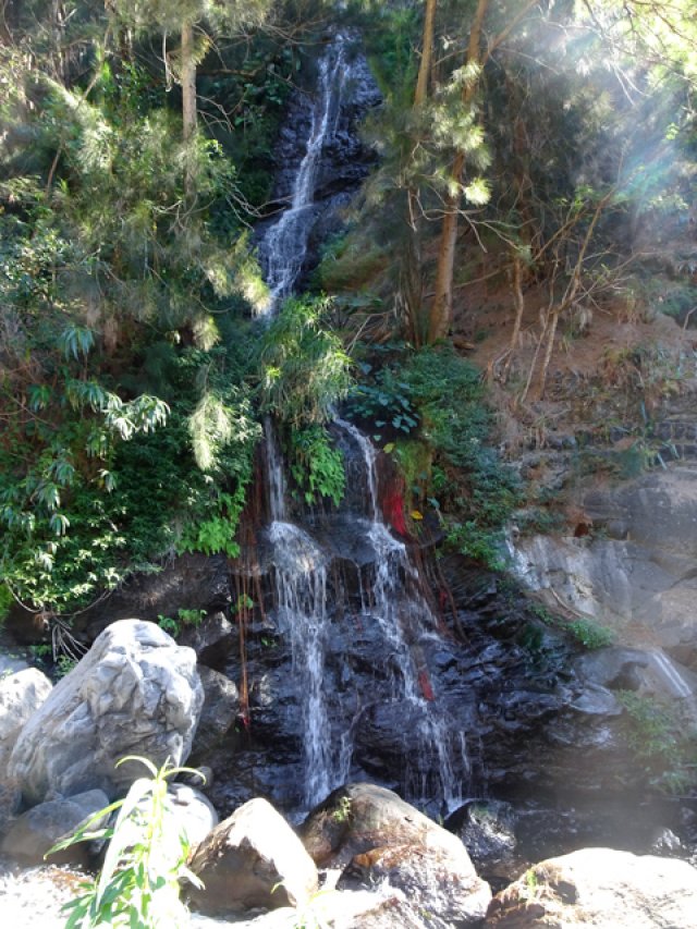 Cette fine cascade tombe à deux pas du sentier. On ne pas se baigner dans le bassin mais il est possible de se doucher sous la fine chute.