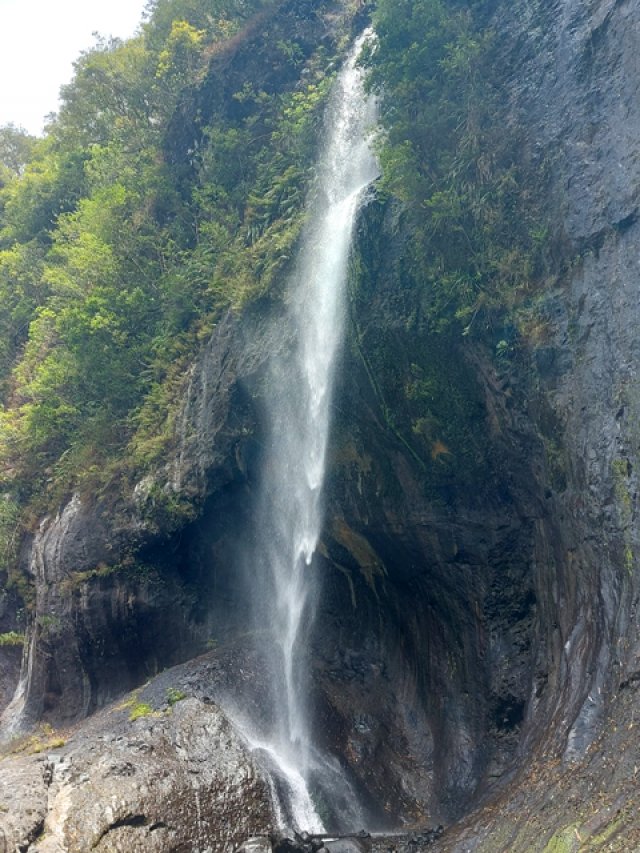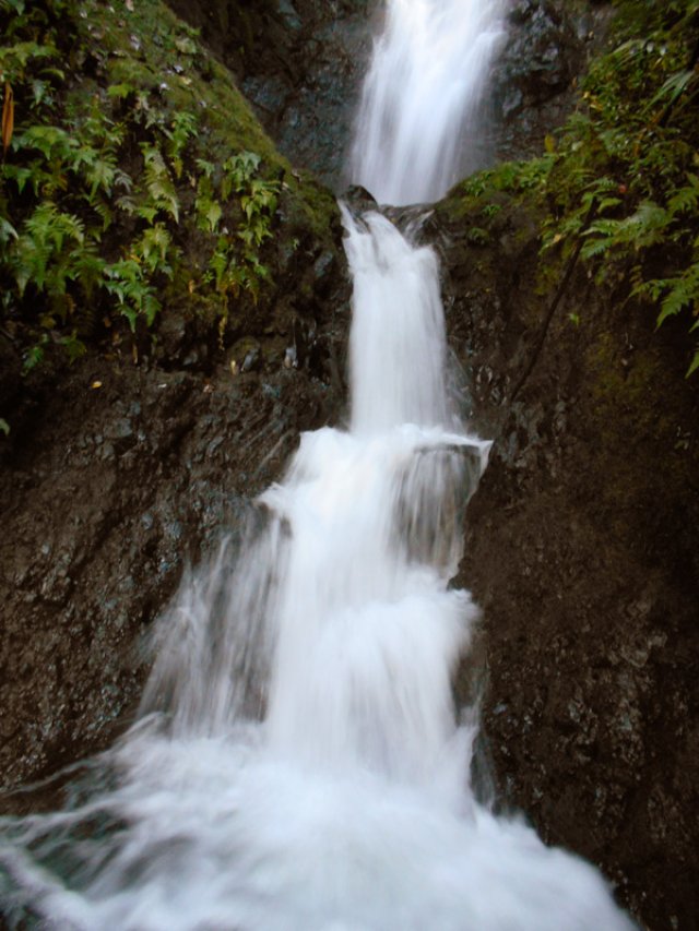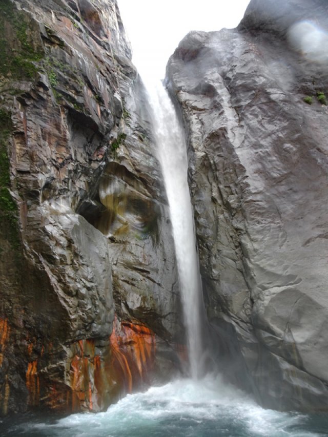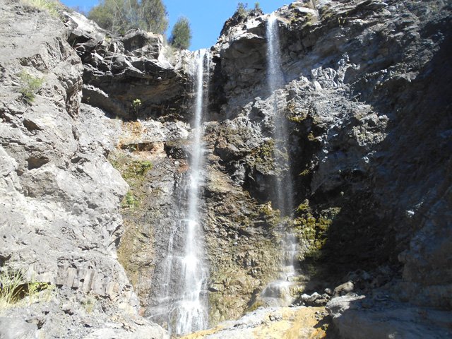 Elle est impressionnante plus par sa hauteur que par son débit. De plus, elle tombe en plusieurs paliers. On peut se baigner et se doucher sous la dernière chute, près du sentier.