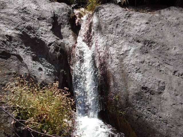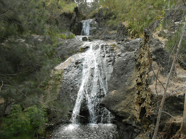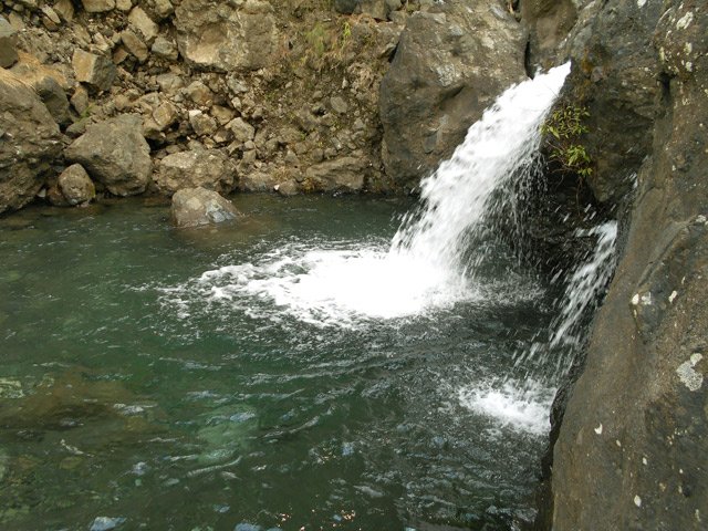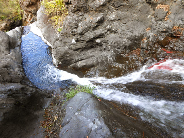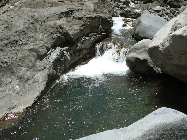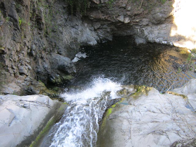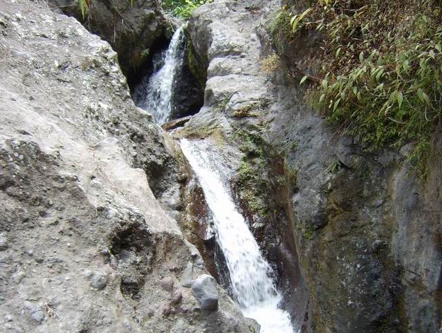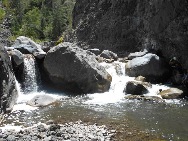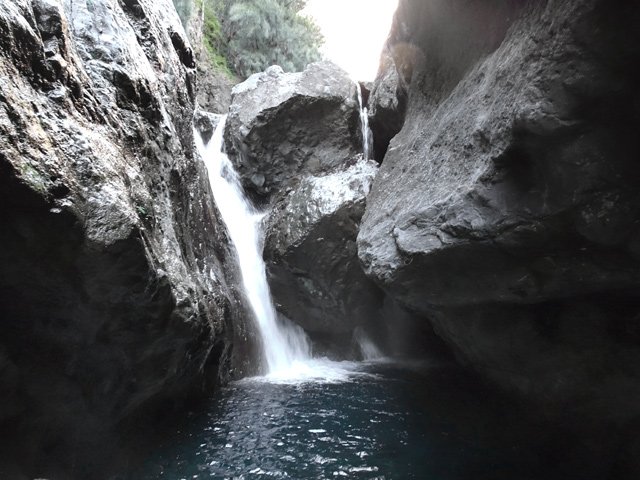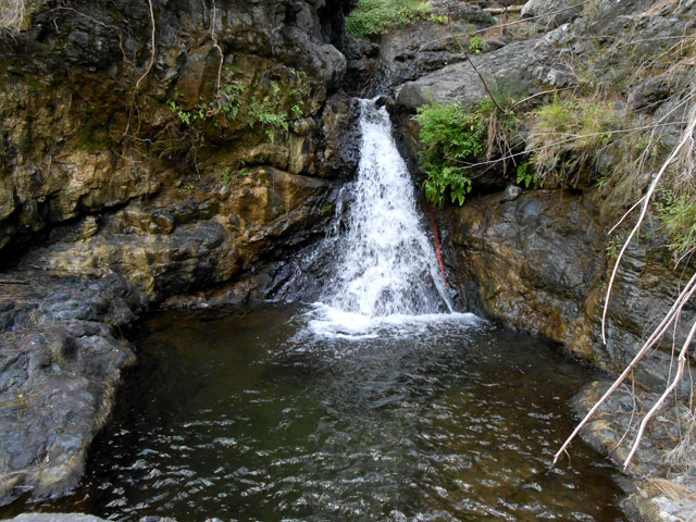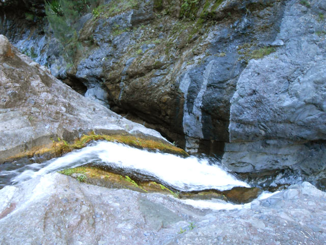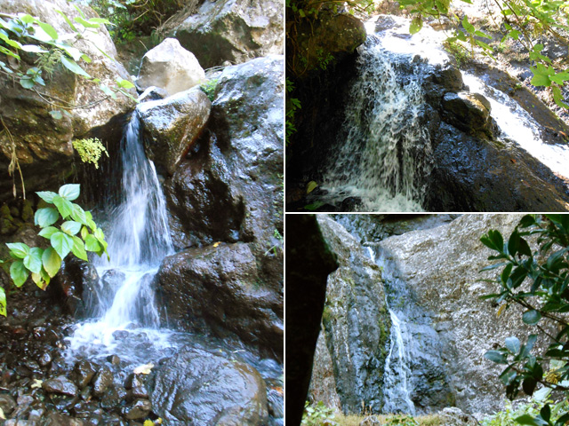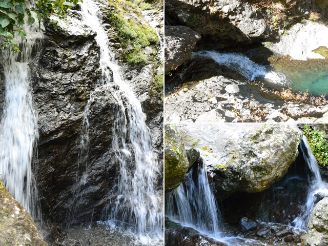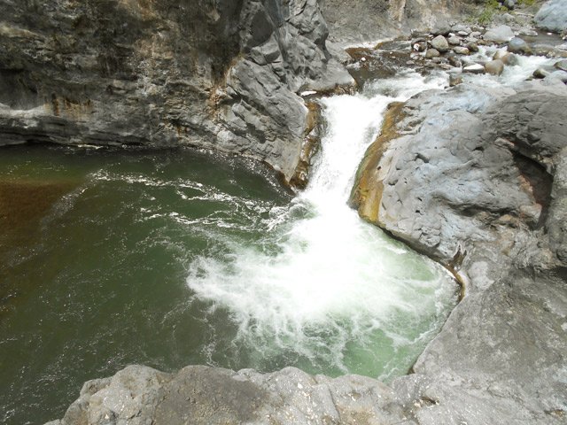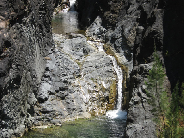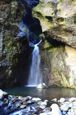 Petites chutes agréables, l'une en amont, l'autre en aval remplissant un grand bassin sombre. La ravine n'est pas toujours en eau.