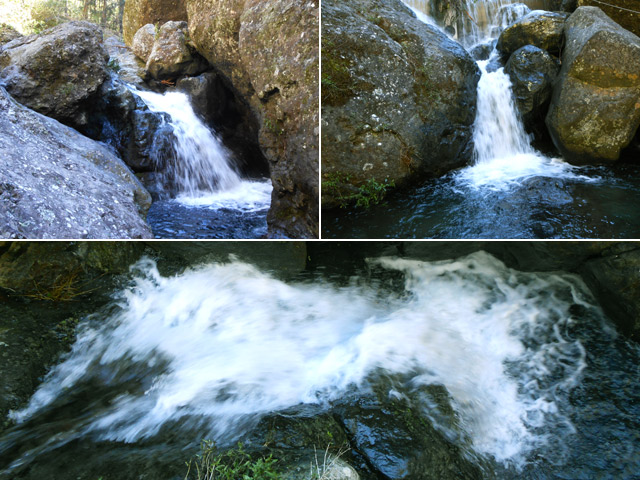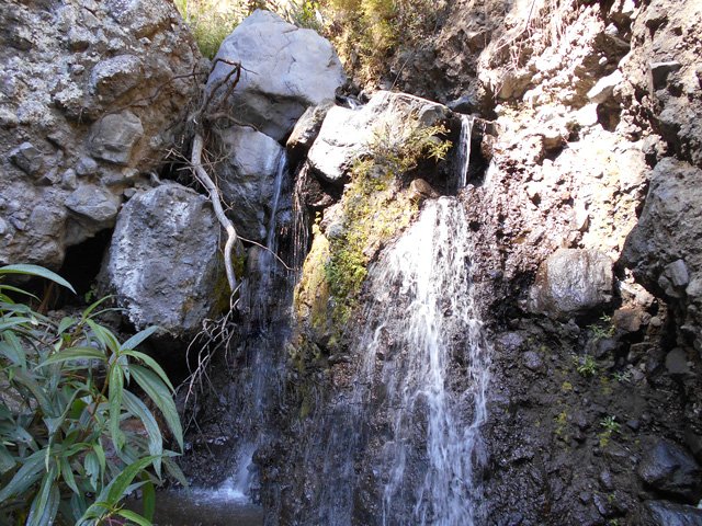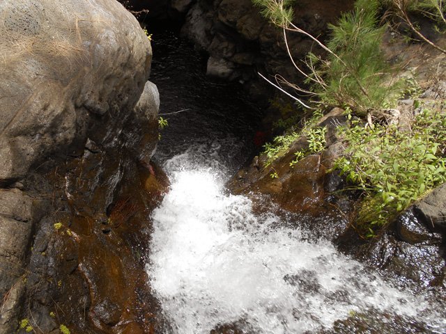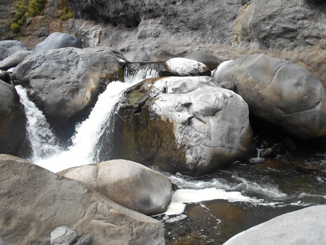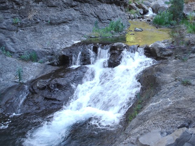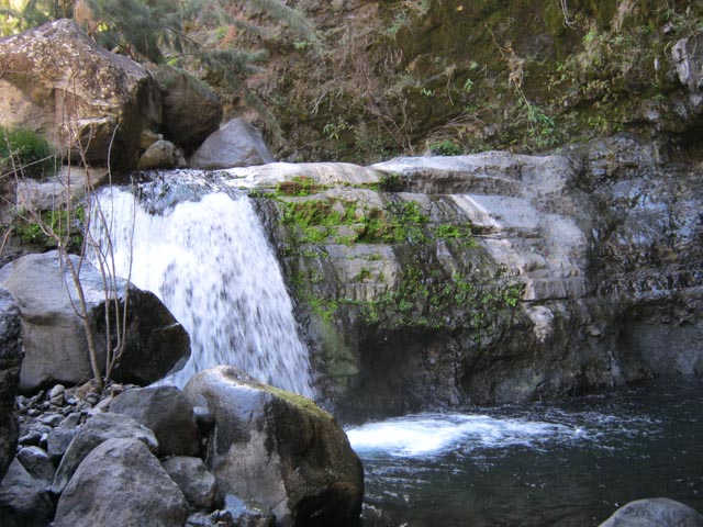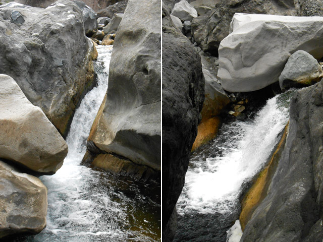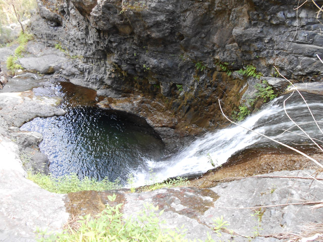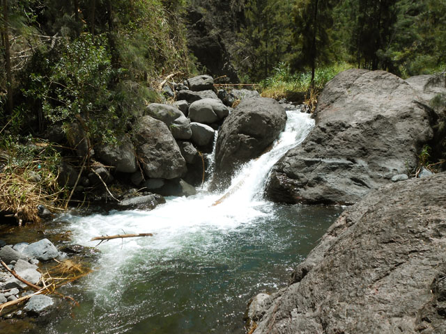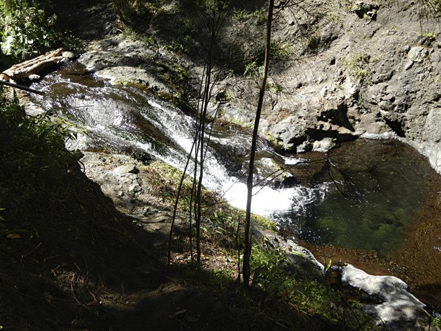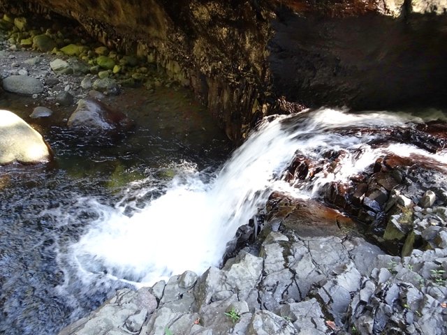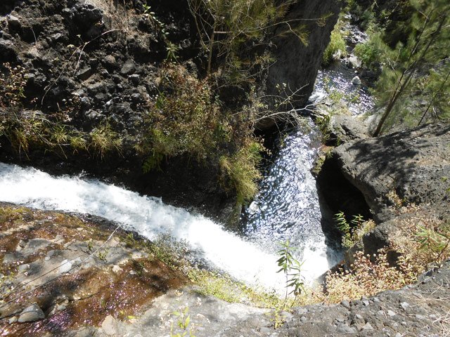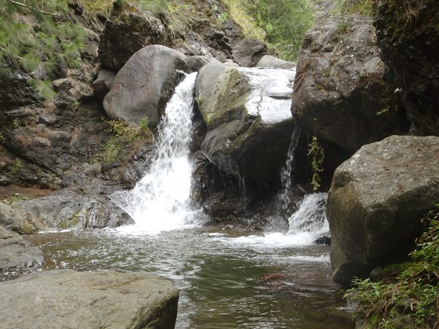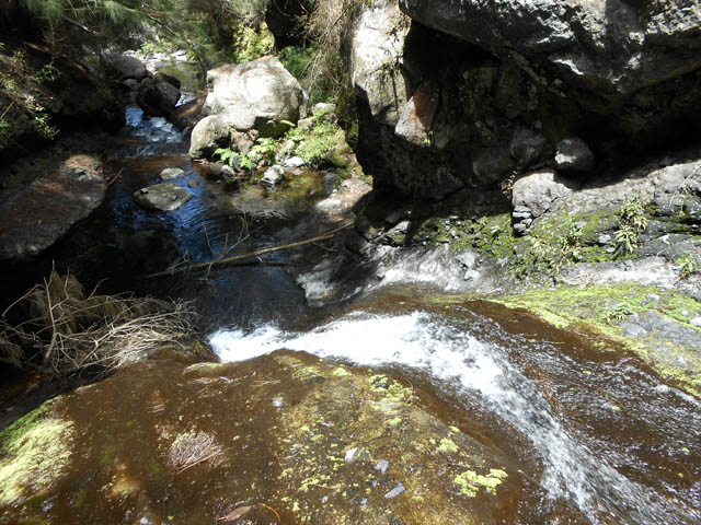 Petites chutes agréables, l'une en amont, l'autre en aval remplissant un grand bassin sombre. La ravine n'est pas toujours en eau.