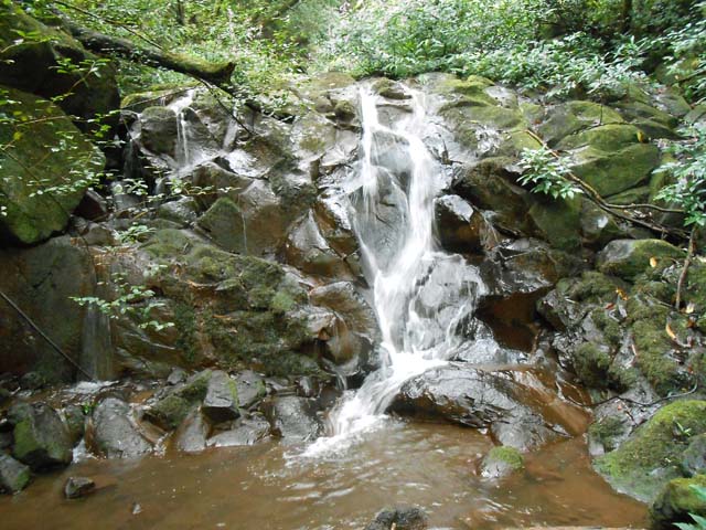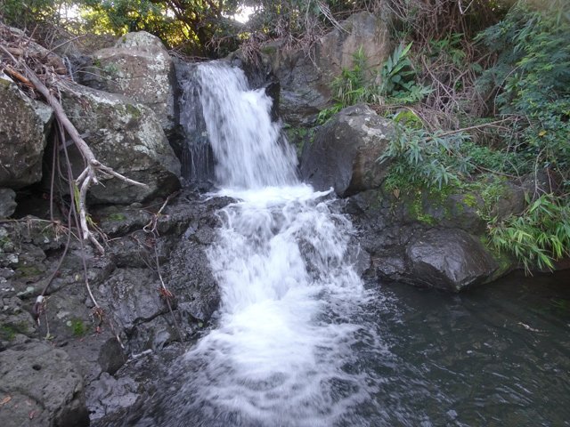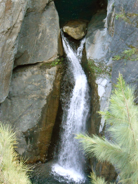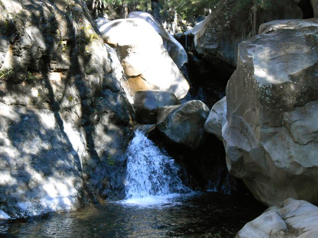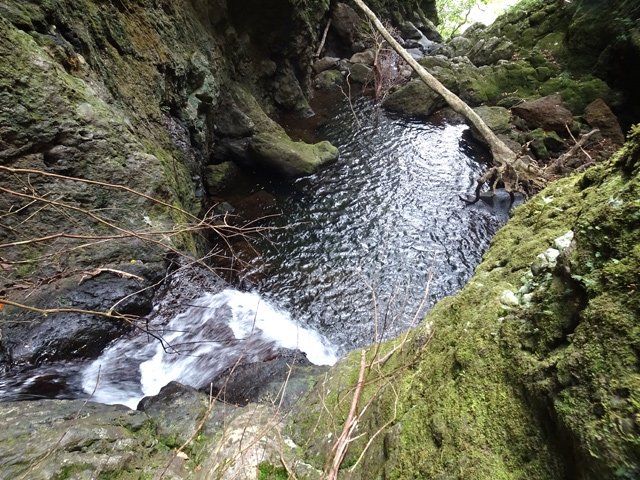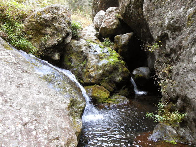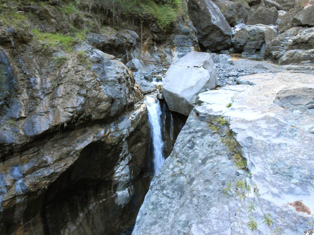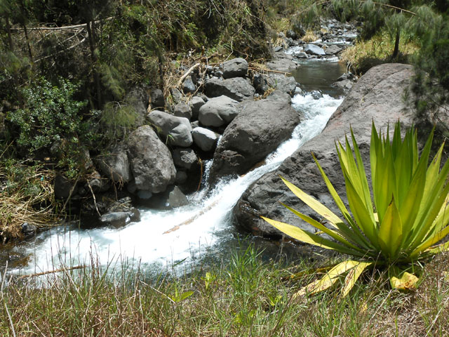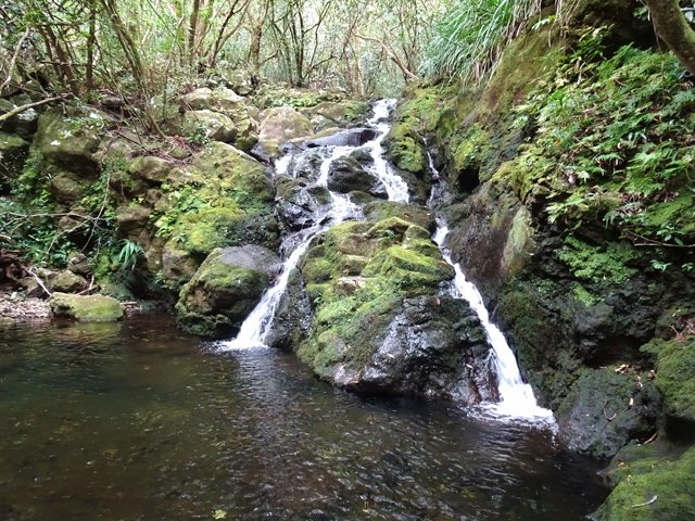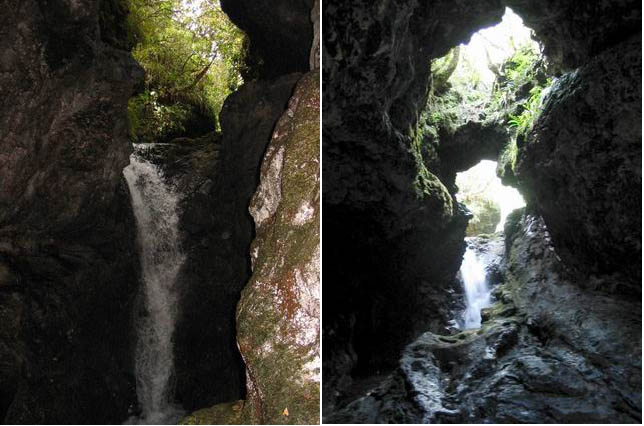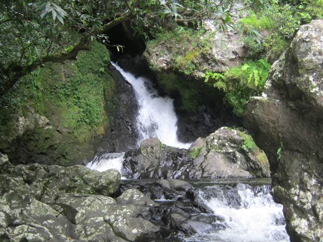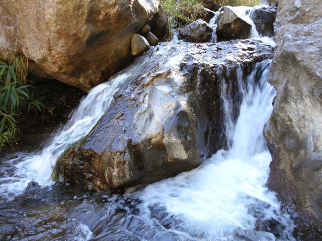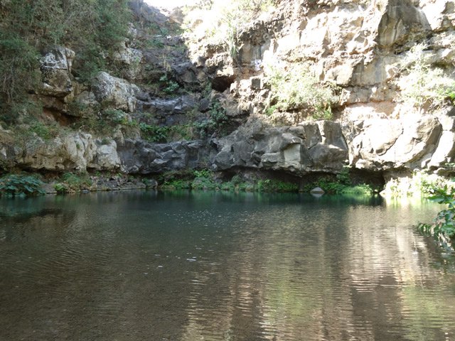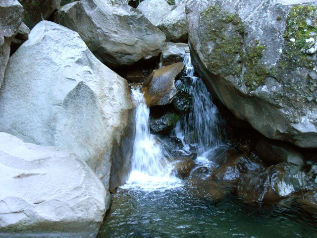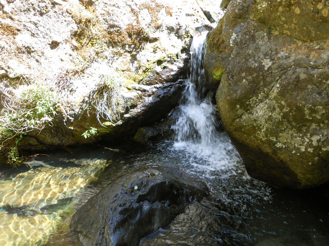 Petites chutes agréables, l'une en amont, l'autre en aval remplissant un grand bassin sombre. La ravine n'est pas toujours en eau.