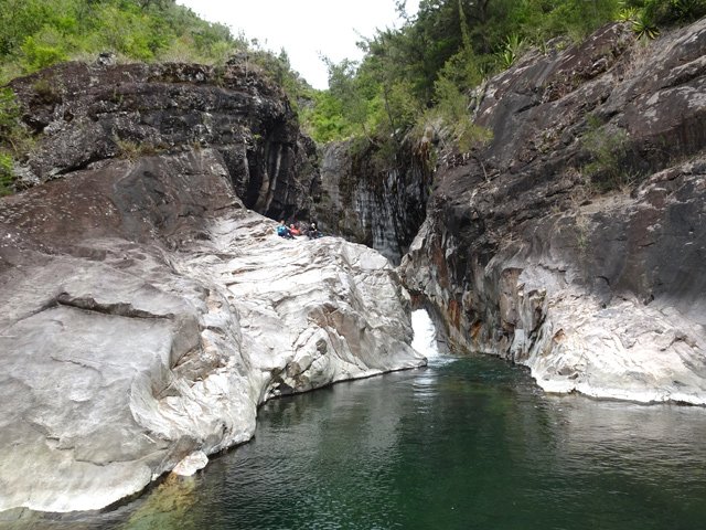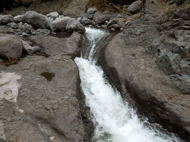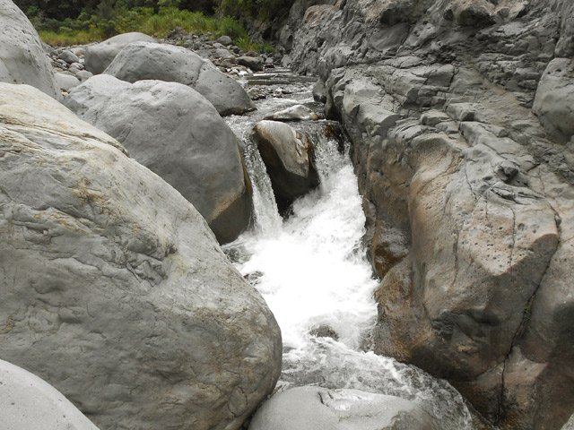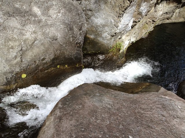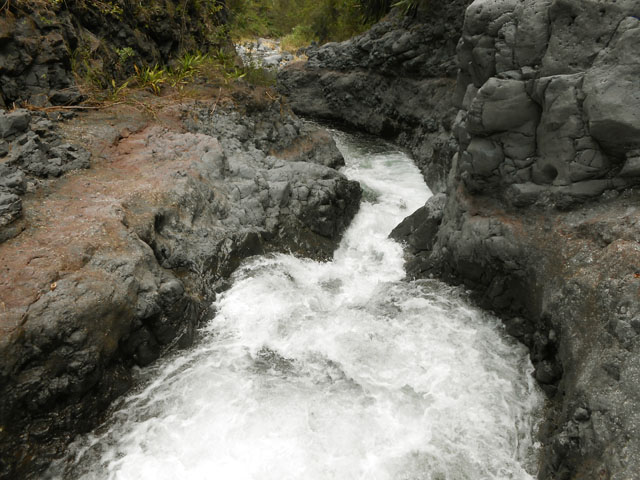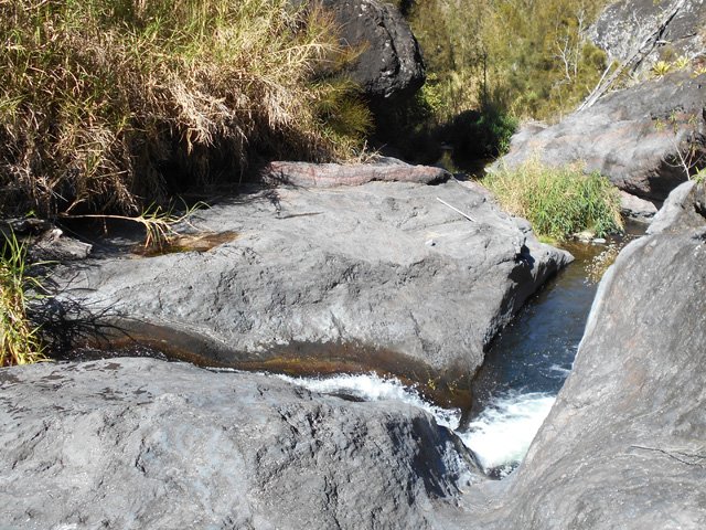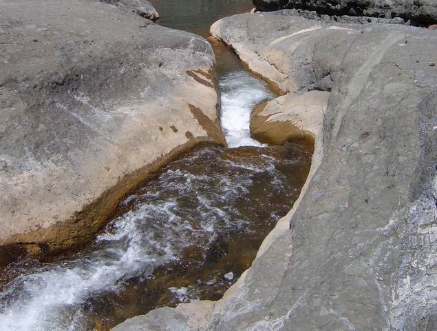 Impossible également de manquer ce toboggan situé 20 mètres en amont du gué qui franchit le Petit Bras de Cilaos lorsqu'on quitte Peter Both en direction des plateaux arides de l'Îlet Haute