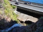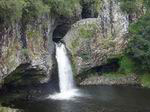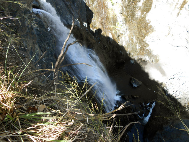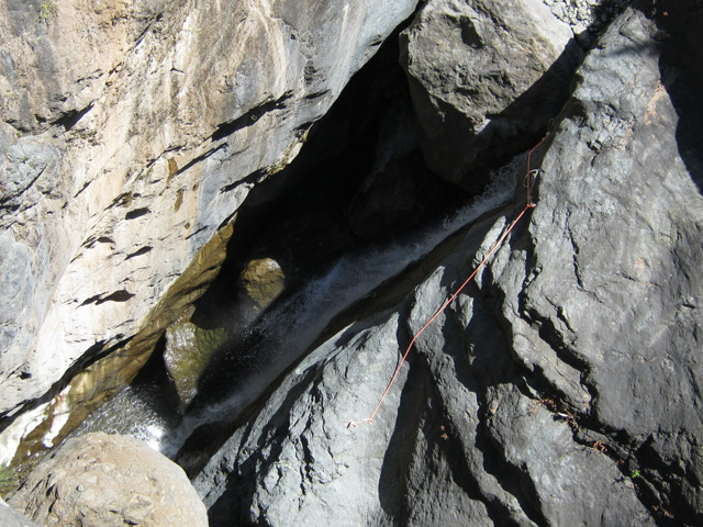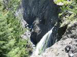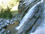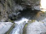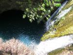 D'un très bon débit, la chute d'une dizaine de mètres surgit du bassin photographié depuis l'amont du pont. Seuls les canyoneurs peuvent la pratiquer. En revanche, tout le monde peut la voir.