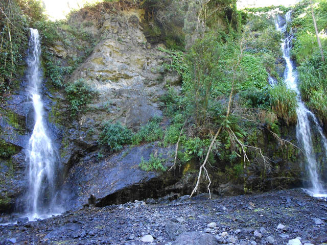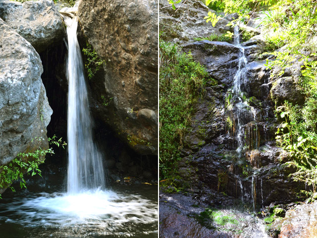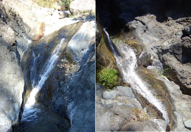 Surtout visibles quand il a plu, ces deux cascades s'approchent d'assez près par un sentier caillouteux. L'eau se jette dans la mer en traversant la plage. Les bassins ne sont pas suffisants pour s'y baigner car ces cascades sont intermittentes.