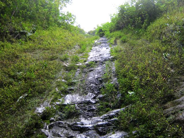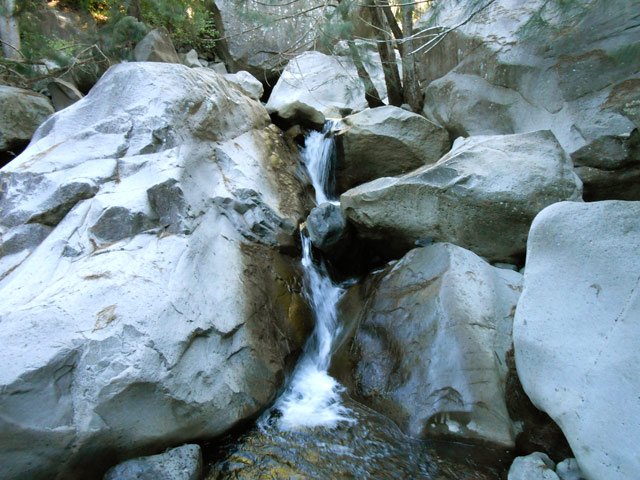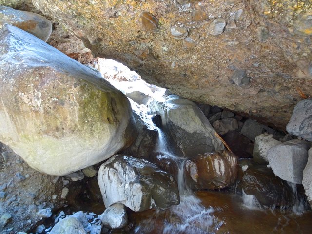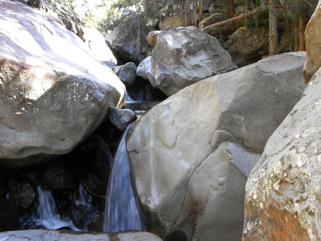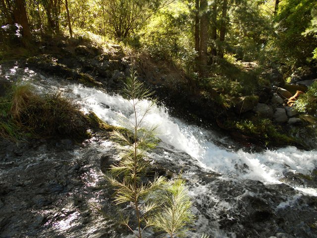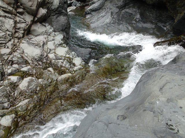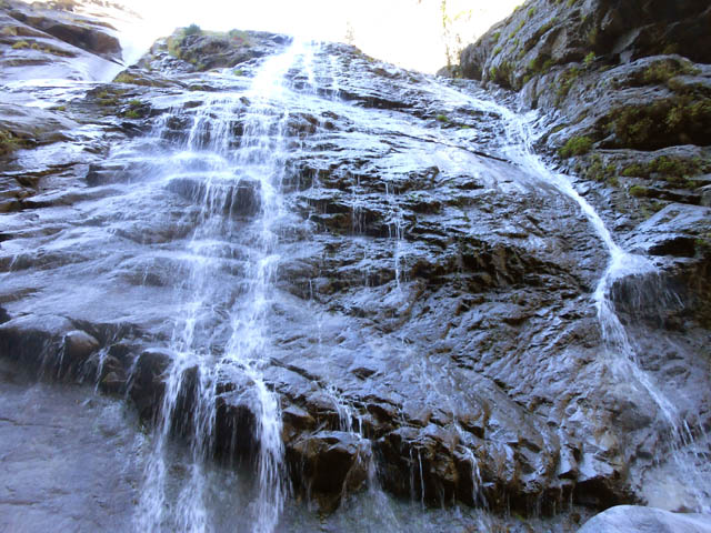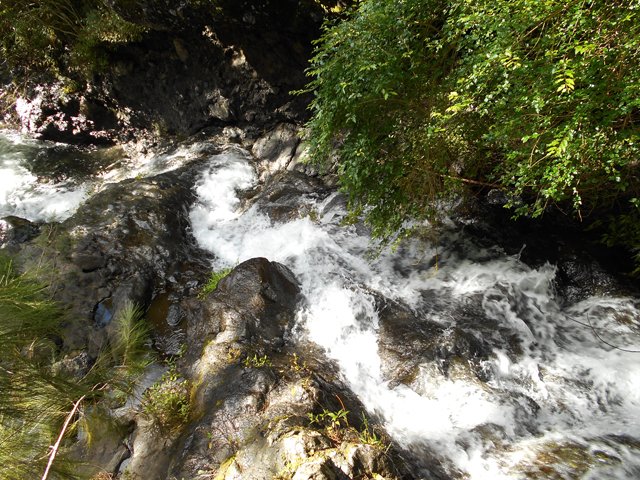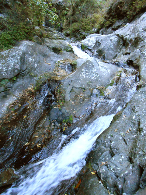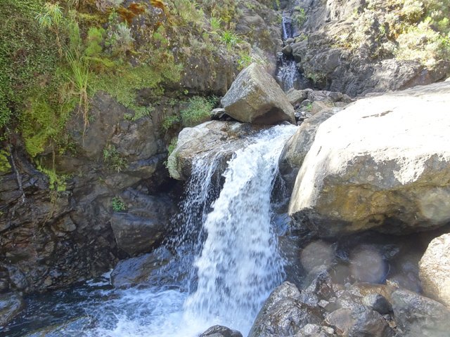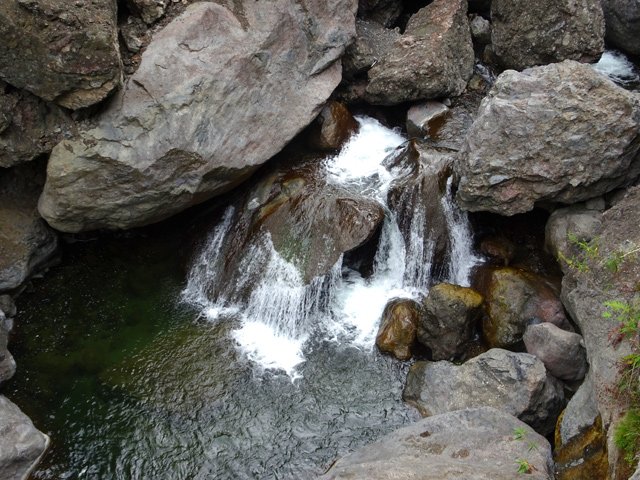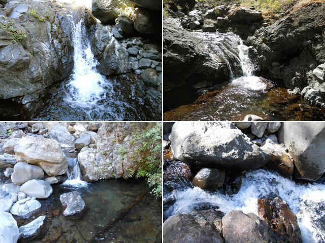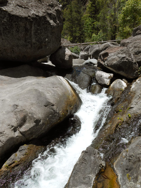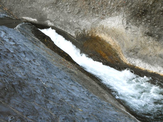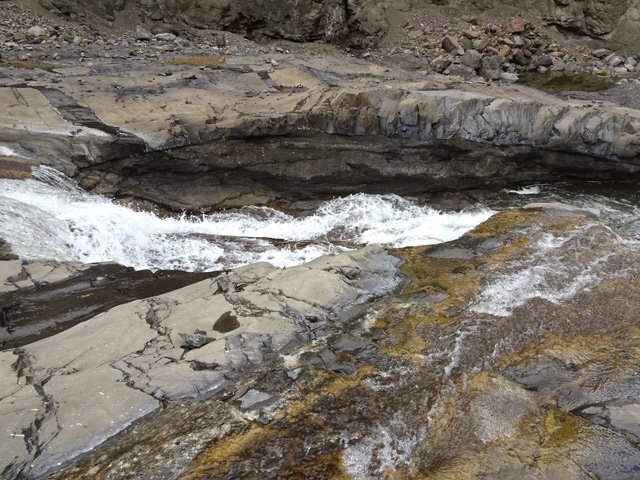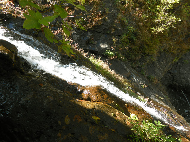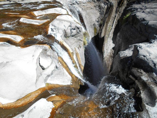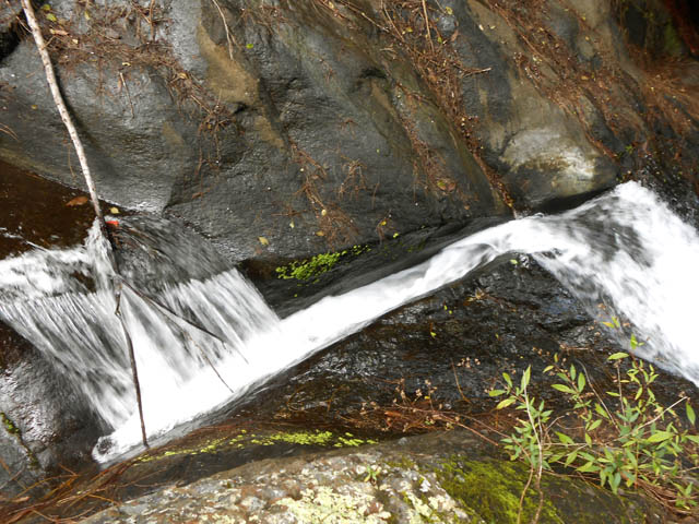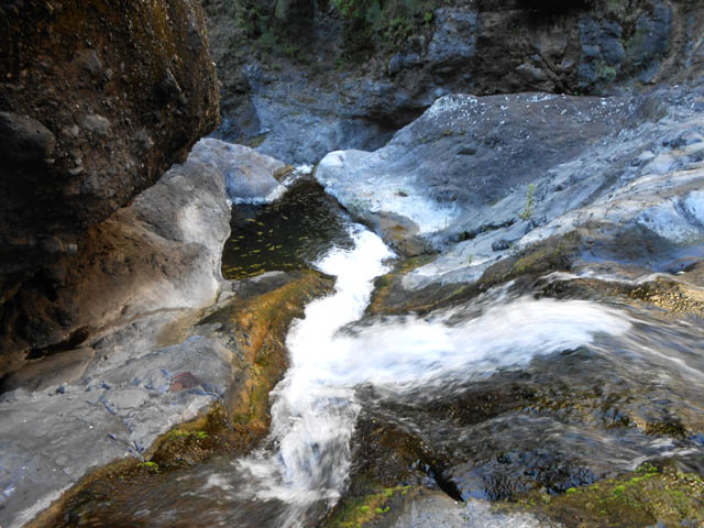 Toutes ces petites chutes ou toboggans se rencontrent pour se rendre au pied de la cascade de la ligne au-dessus.