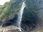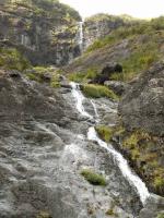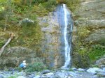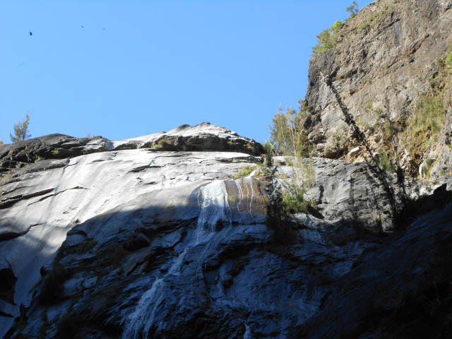 Très visible tout au long de la remontée du torrent. Le débit de la fine cascade est faible et la douche très agréable en cas de bivouac sous la superbe grotte située à deux pas.