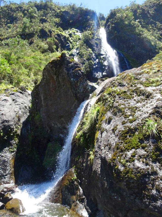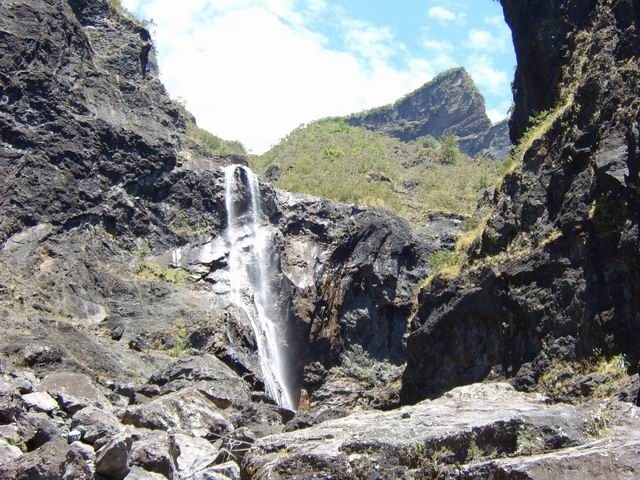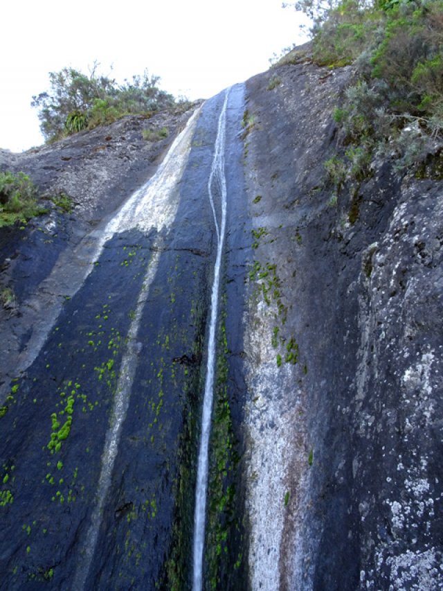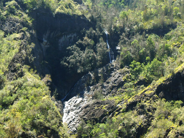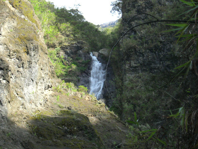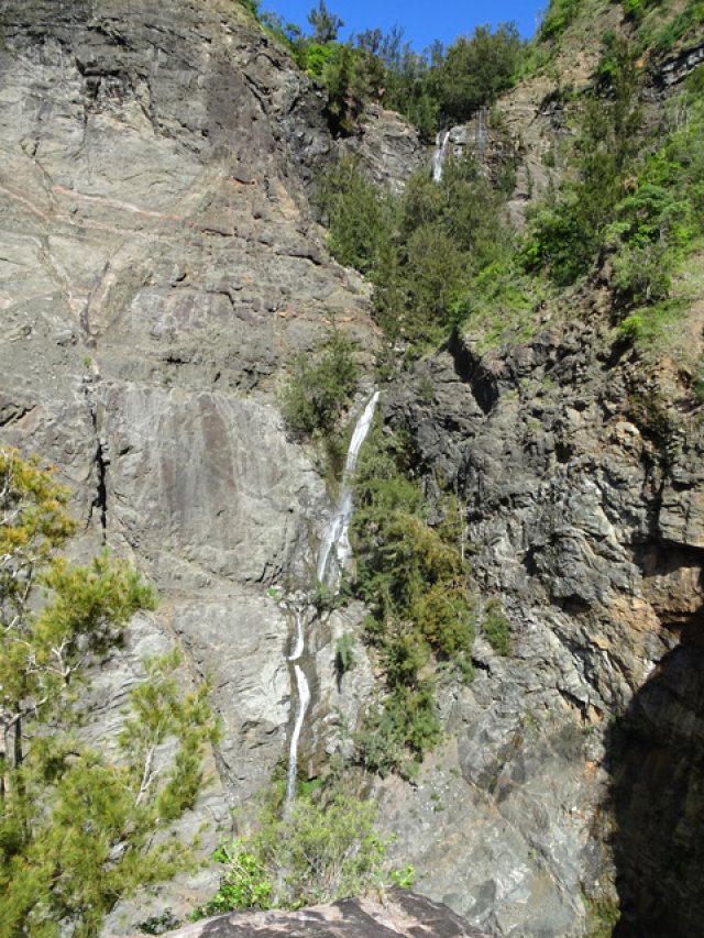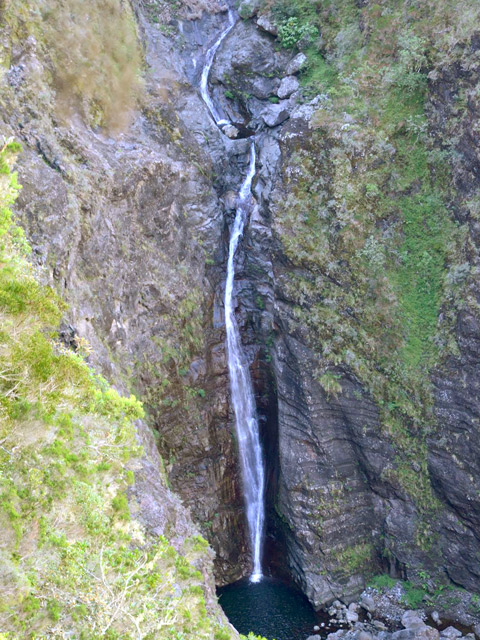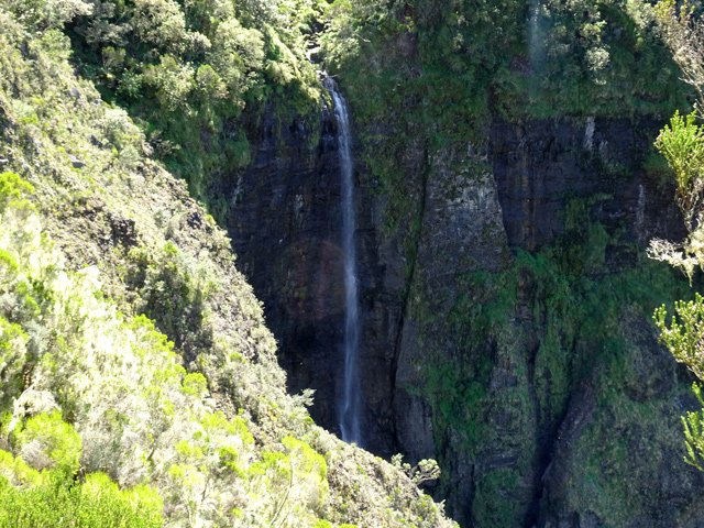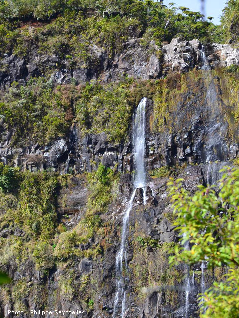 Une cascade impressionnante visible uniquement en partant de la Plate Forme, à la sortie de Cilaos et en marchant vers le Cap Noir (pancartes).