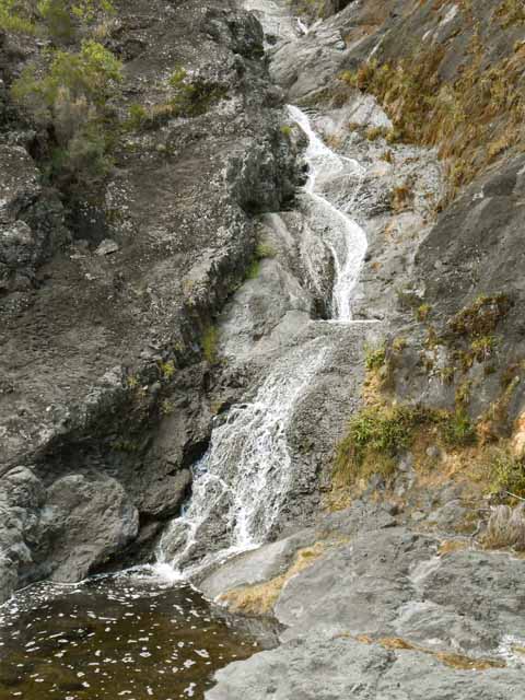 La grande chute est inaccessible mais se voit assez bien durant la montée. La plus belle comporte un petit bassin d'eau claire. D'autres chutes plus ou moins modestes se contournent par les gros rochers.