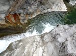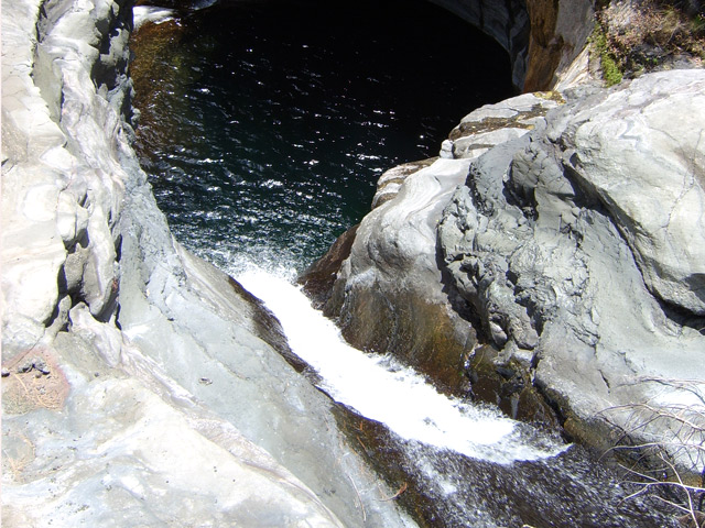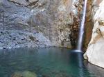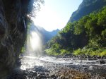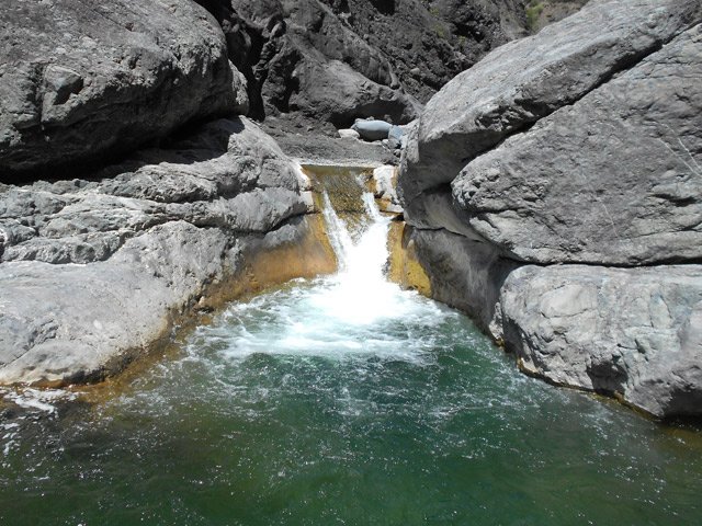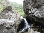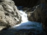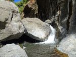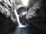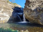 Jamais beaucoup d'eau dans cette ravine avec impossibilité de s'approcher du bassin lors d'une randonnée. S'atteint uniquement en canyoning.