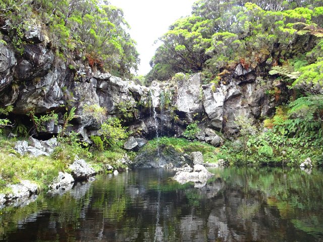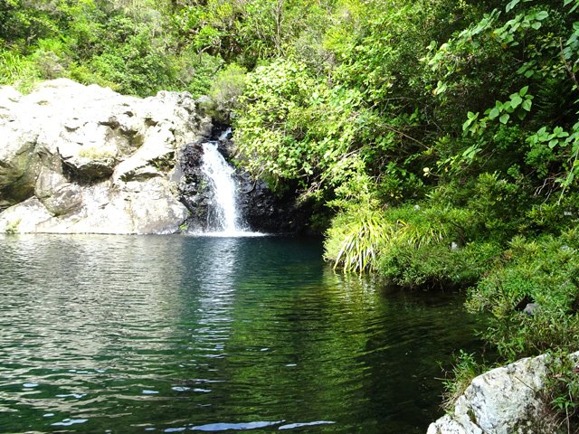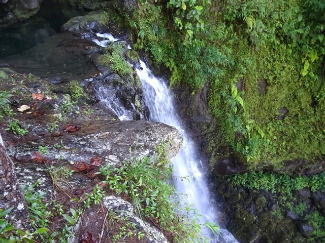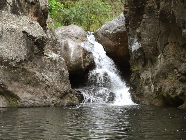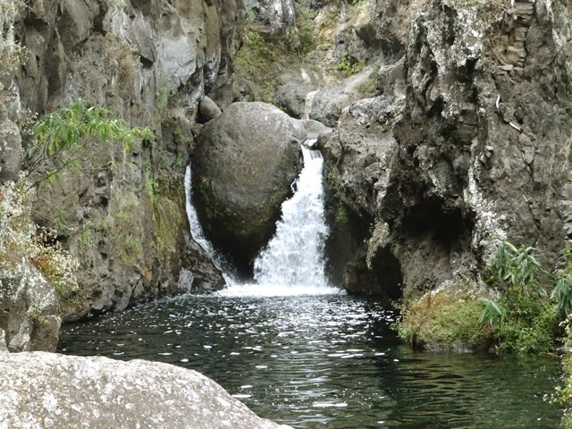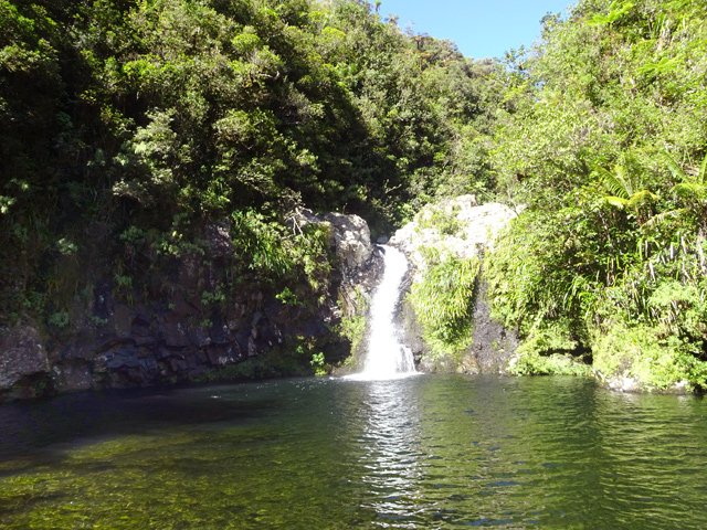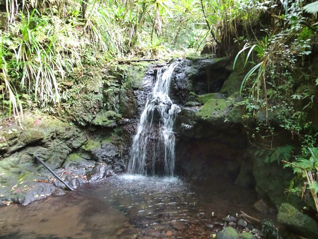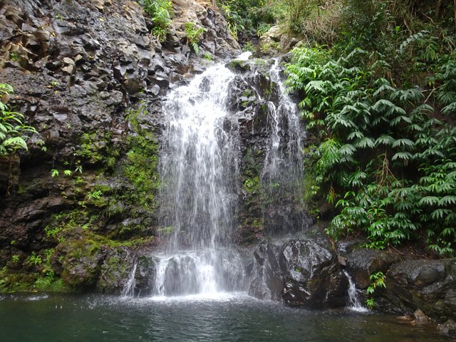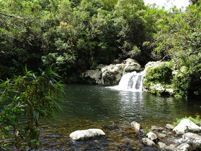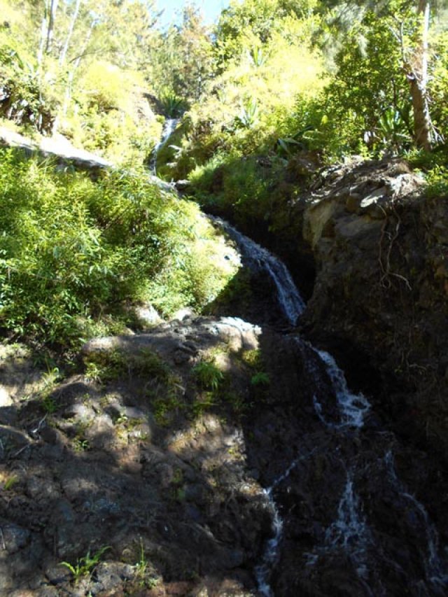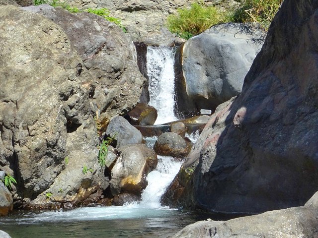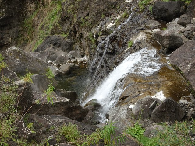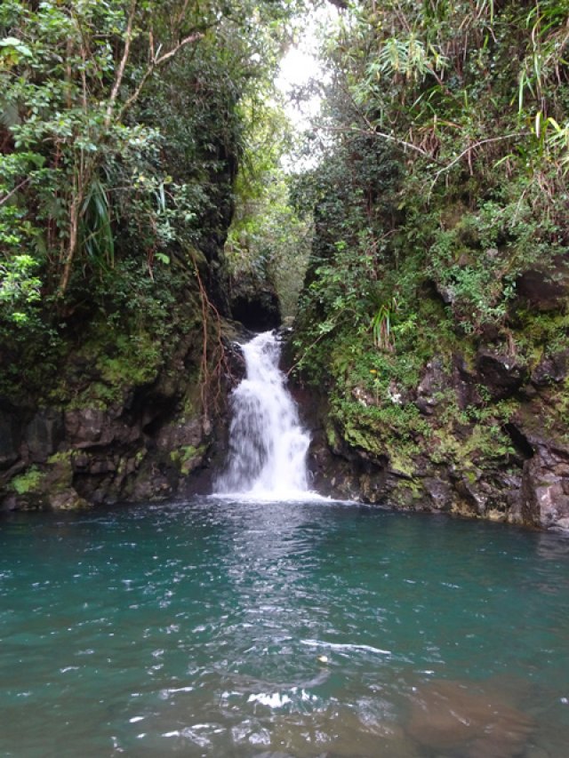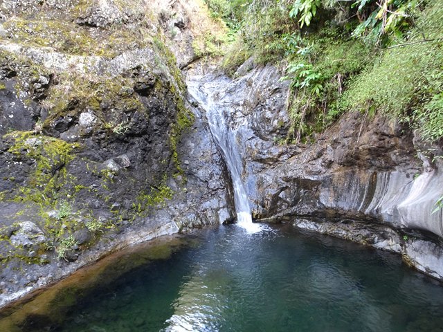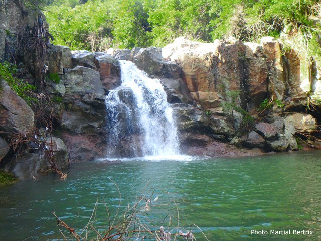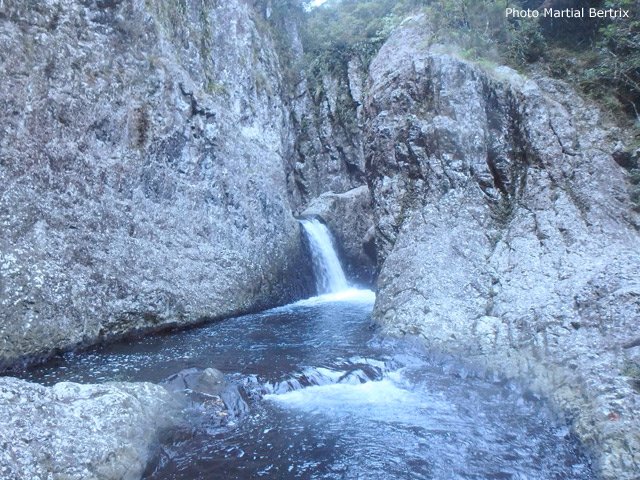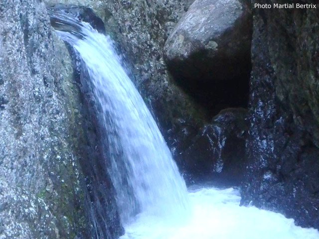 Cette minuscule cascade et son bassin se rencontrent lors de la traversée de la Ravine Henri Dijoux sur le sentier de la Chapelle en descendant vers le Bras Rouge. Impossible à manquer avec le bruit de l'eau.