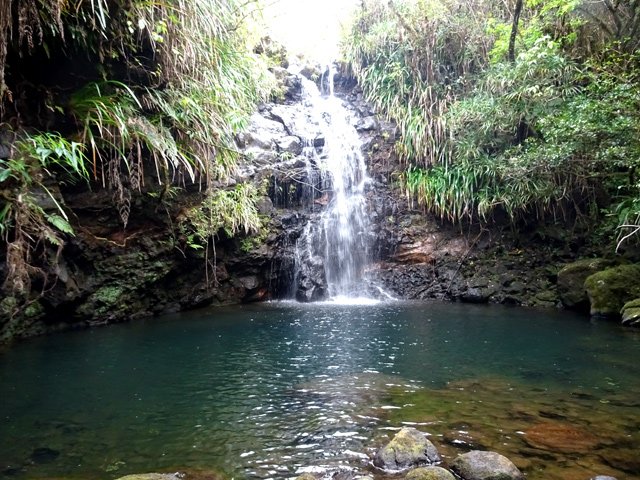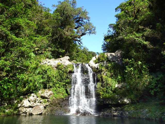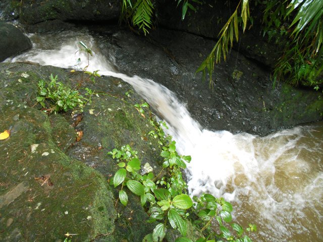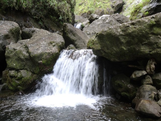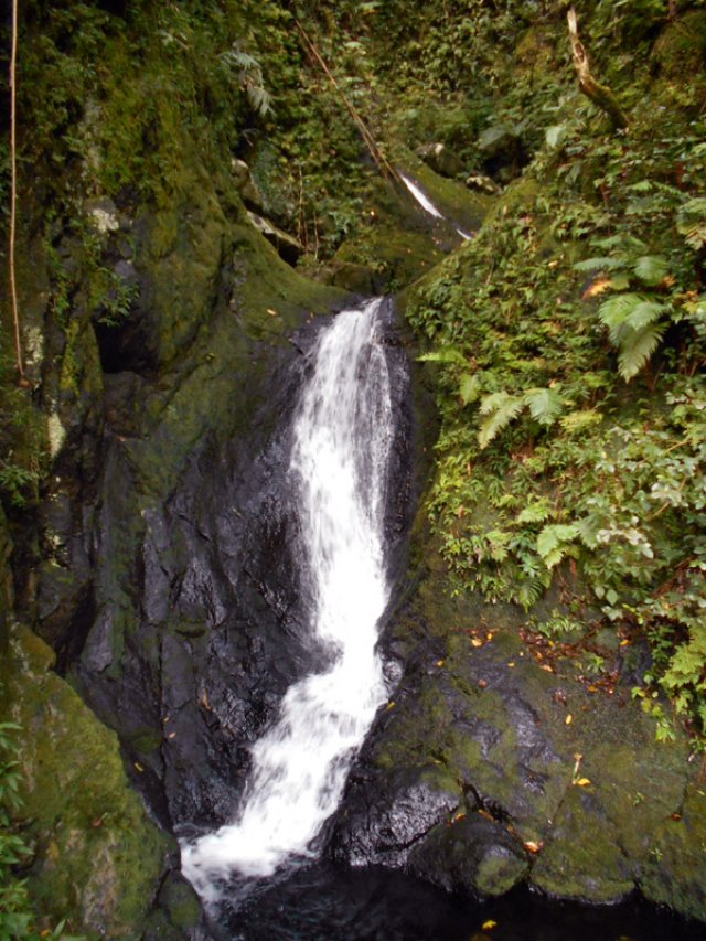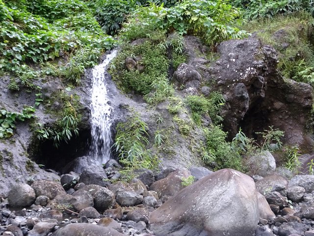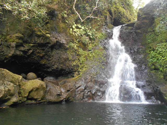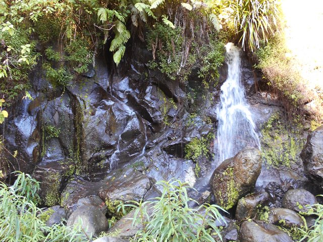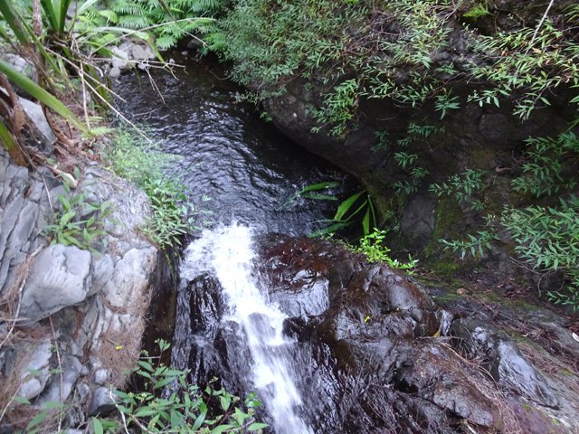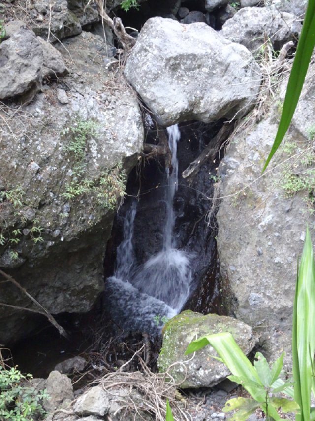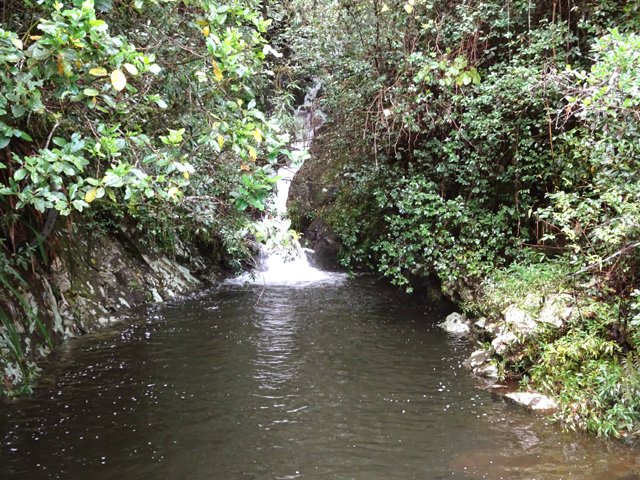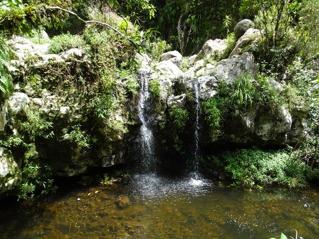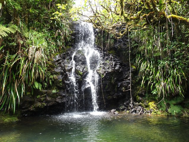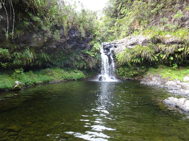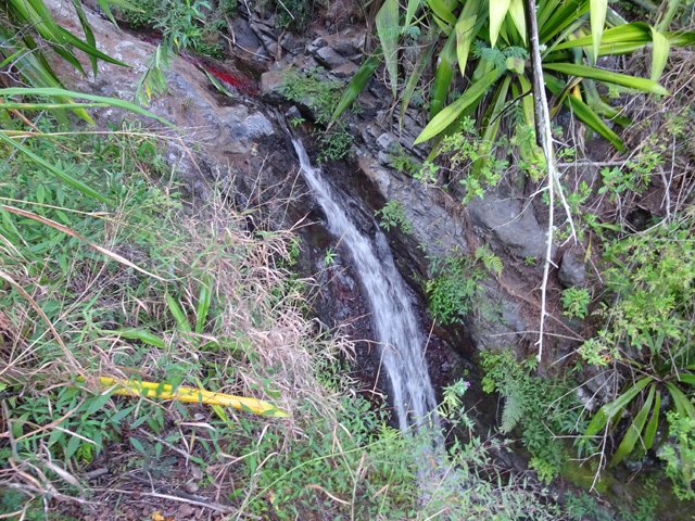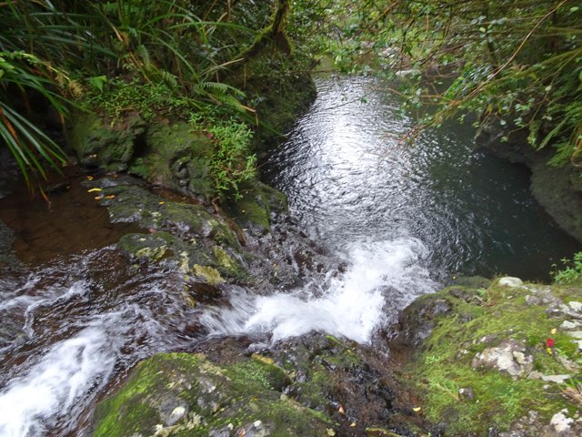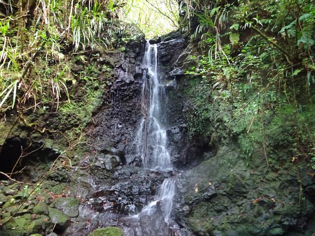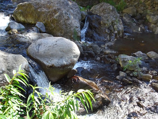Cette minuscule cascade et son bassin se rencontrent lors de la traversée de la Ravine Henri Dijoux sur le sentier de la Chapelle en descendant vers le Bras Rouge. Impossible à manquer avec le bruit de l'eau.