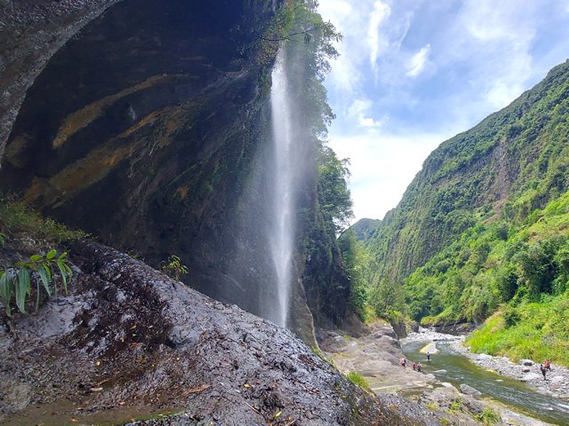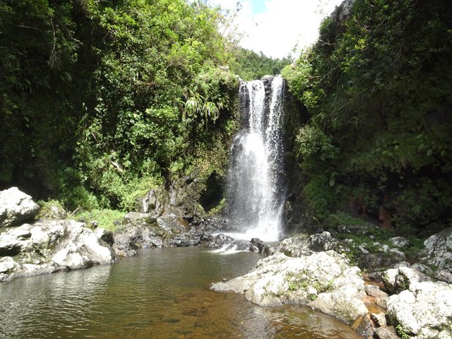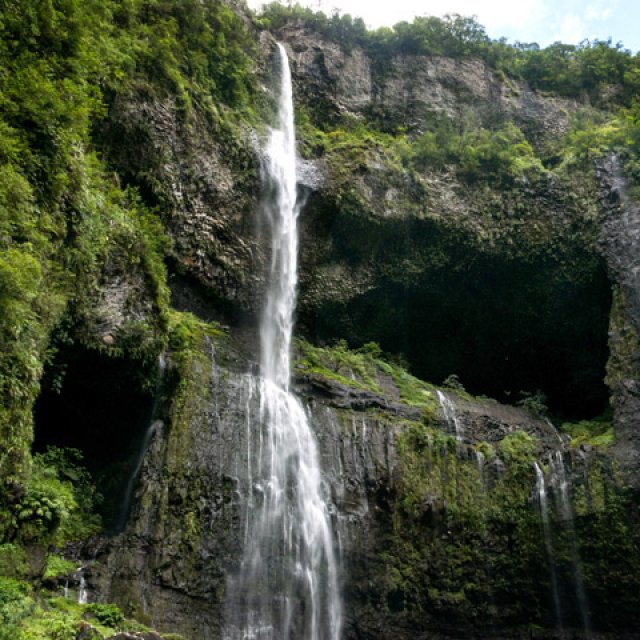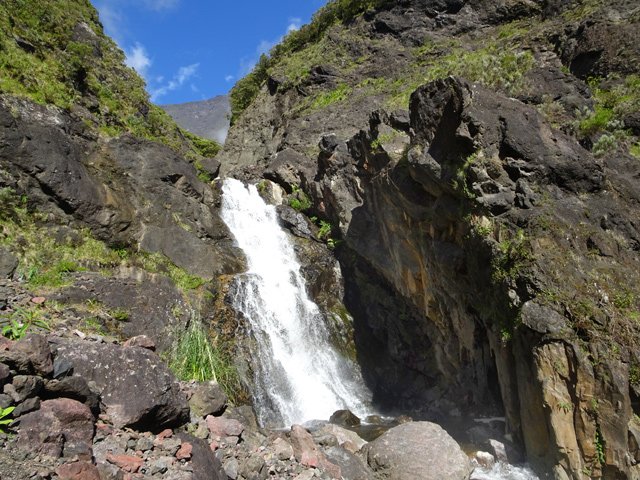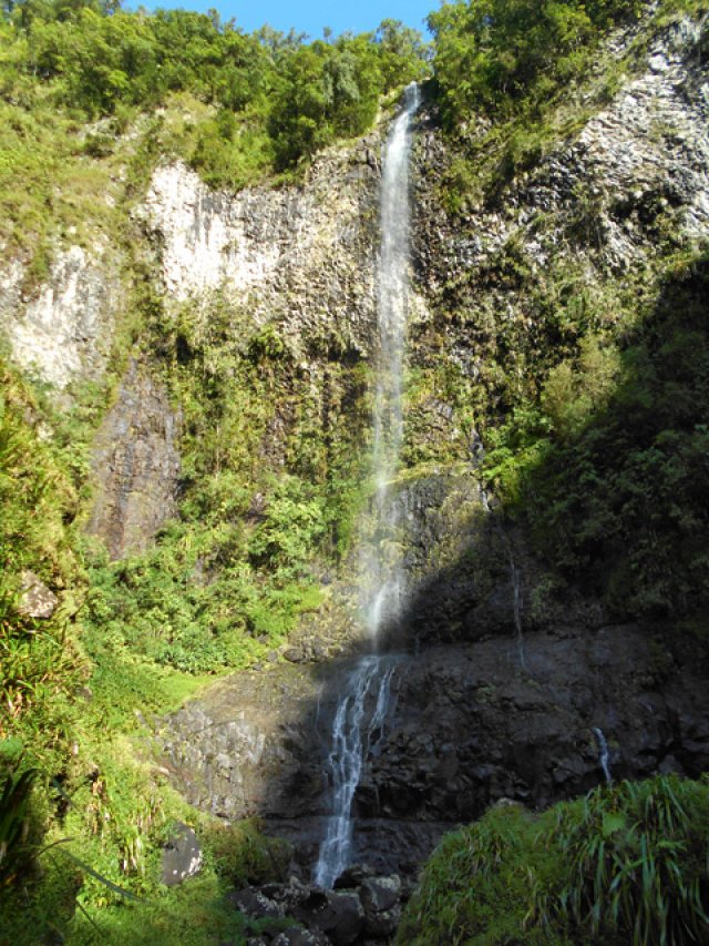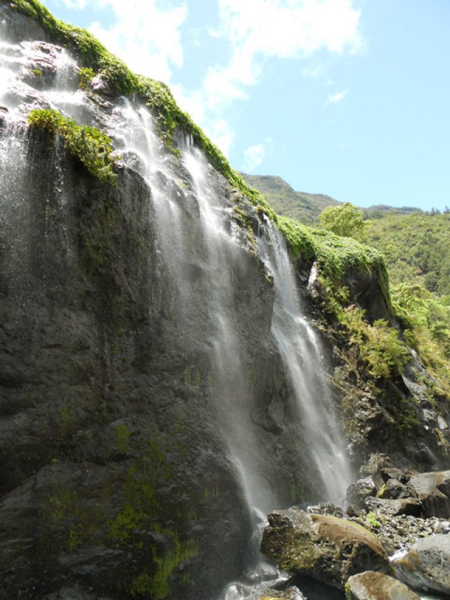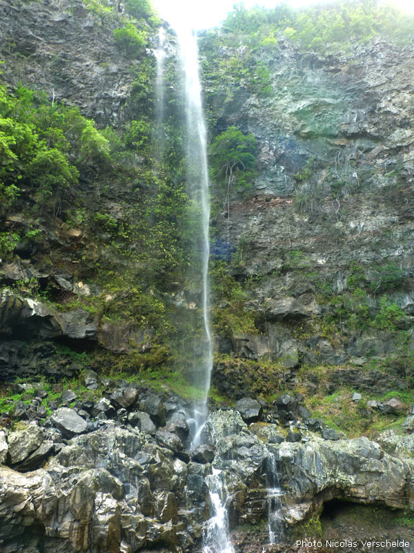 Très belle chute arrivant tout droit de l'effondrement de Mahavel et des hauts du Morne Langevin. Possibilité de passer derrière la cascade pour de belles photos de la vallée cachée par le voile d'eau. Pas de bassin et donc de baignade possible.