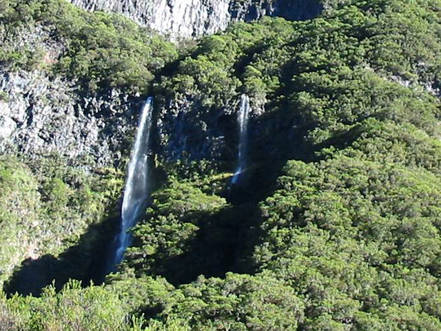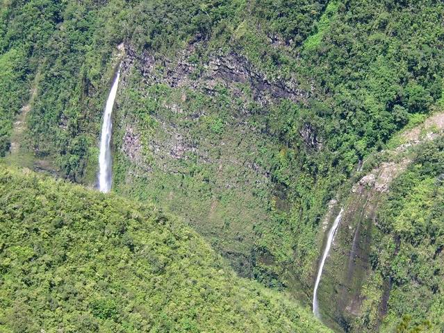 On voit ces deux cascades en longeant le Sentier de la Rivière des Remparts, en regardant sur la droite vers le Nez de Bœuf après avoir terminé la descente depuis la route du Volcan.