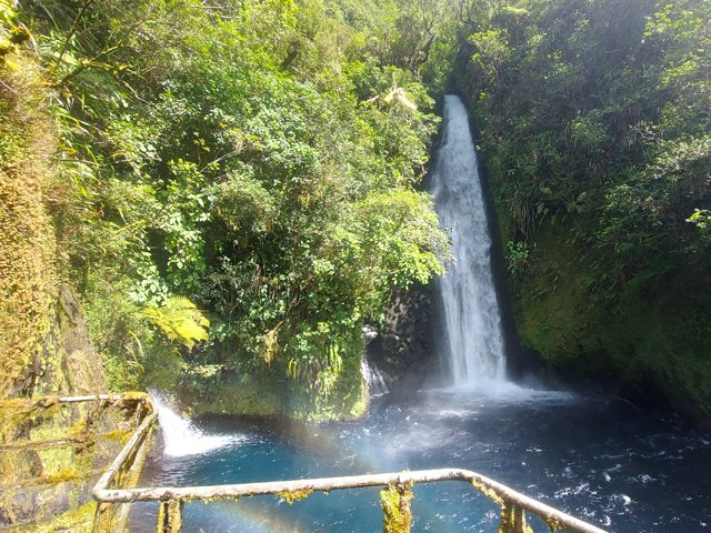 La meilleure vue sur la cascade se situe depuis la plus grande passerelle de la randonnée sportive au captage du Bras de Sainte Suzanne.