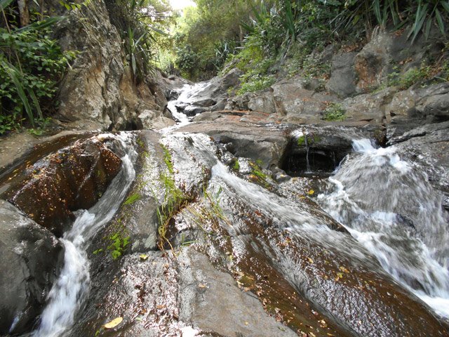 Seules les deux premières chutes sont originales. La plus importante est aussi rouge que blanche à cause des racines de filaos. En montant vers les sources, on voit partout des petites chutes ou toboggans mais rien d'extraordinaire. Agréable sortie pour des photos de nature originales.