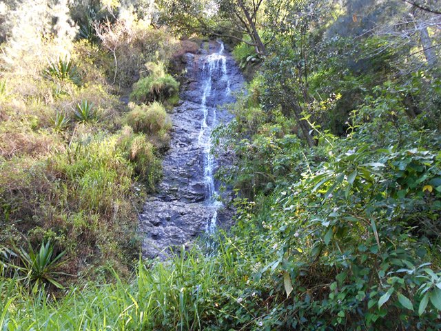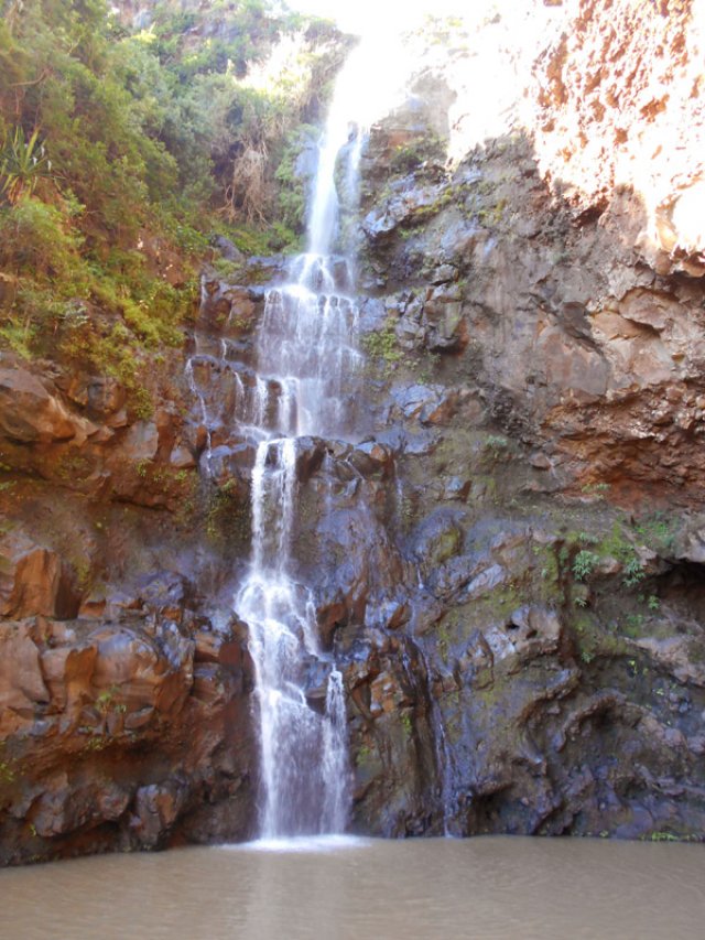 Très haute et fine chute dont la partie supérieure est plus difficile à distinguer en raison des filaos nombreux poussant sur les rives verticales. Le débit est faible et le bassin insignifiant.