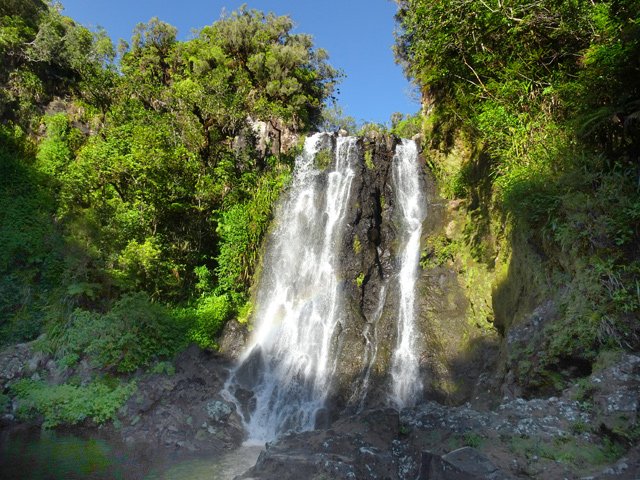 Cette cascade, souvent à sec se trouve à la fin de la randonnée qui part de l'Entre Deux, monte au Zèbre et redescend pour longer le Bras Long quand le sentier a été défriché pour nettoyer les crépines.
