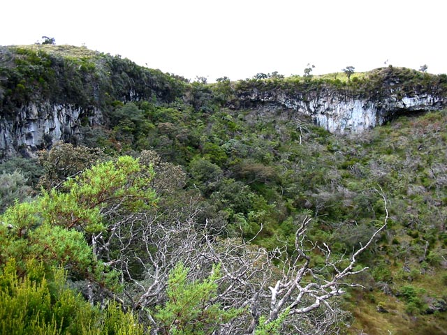 On trouve sur l'île de très nombreux cratères mais tellement anciens qu'ils ressemblent à de vertes collines. Des cratères comme celui-ci peuvent s'escalader lors des randonnées aux Puys Ramond.