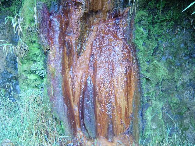 Ces concrétions ferrugineuses sont assez rares. On en voit souvent de très petites et les plus importantes s'observent aux Sources Mannouilh. Certaines coulées presque rouges ont certainement donné leur nom au Bras Rouge.