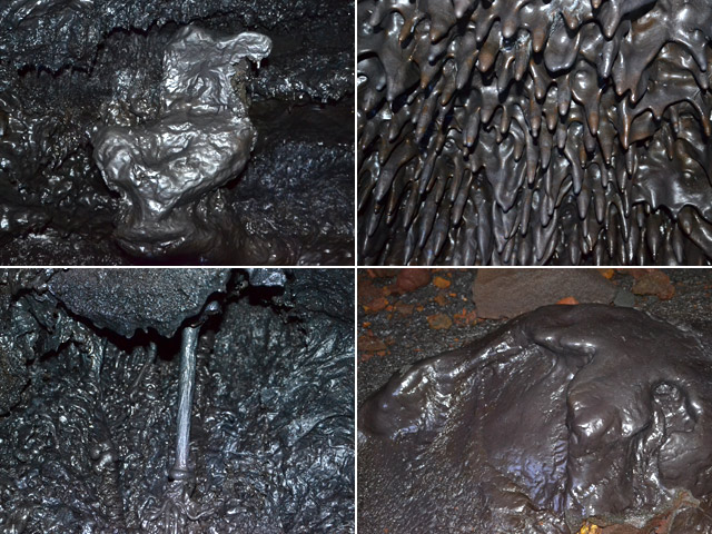 On découvre chaque mois de nouveaux tunnels de lave dont certains de plusieurs kilomètres de long ou d'une centaine de mètres de profondeur. Il vaut mieux les visiter avec des guides mais celui de Citron Galet est facile d'accès et donne une bonne idée de cette formation particulière bien qu'il ne comporte que de très rares concrétions comme celles présentées ci-dessous.