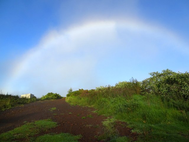 En montagne, il est possible de voir cet arc blanc. L'arc se forme de la même façon qu'un arc-en-ciel classique. La source de lumière derrière l'observateur éclaire la brume ou le brouillard et la lumière effectue une réfraction en passant de l'air dans les gouttes, suivi d'une diffraction partielle, puis une réflexion interne et une nouvelle réfraction en sortant des gouttes avant d'atteindre l'observateur. La lumière est très peu décomposée en différentes couleurs parce que les gouttelettes font moins de 0,05 mm de diamètre, ce qui donne cet aspect blanc.Un arc blanc est presque aussi grand qu'un arc-en-ciel et beaucoup plus large. Le Soleil ne doit pas être à plus de 30 - 40° de hauteur sur l'horizon à moins que son visionneur ne soit sur une colline et donc que la brume et l'arc puissent être vus d'en haut. Source : Wikipedia