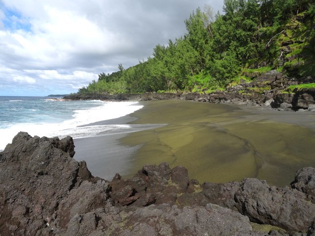 La coulée de 2007 partie du Piton du Tremblet est descendue jusqu'à la mer, créant de nouvelles terres. Ces terres, ou plutôt ces laves, ont aussitôt été attaquées par les vagues incessantes qui ont les ont effritées puis réduites en sable fin. L'importante quantité d'olivine prisonnière des roches a petit à petit recouvert cette plage de sable jaune tirant sur le vert, d'un très bel effet au soleil. C'est une plage parmi les plus récentes sur le globe terrestre.
