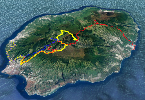- Le Trail de Bourbon (jaune) : 109 km pour 6260 m de D+
