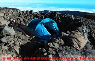 Une grande différence entre le camping et le bivouac. On s'installe confortablement et longuement avec le premier. On monte la tente au crépuscule et on la démonte à l'aurore afin de partir plus rapidement avec le second. Le premier est réglementé et peu développé alors que le deuxième est autorisé sur toute l'île même dans le Parc National.