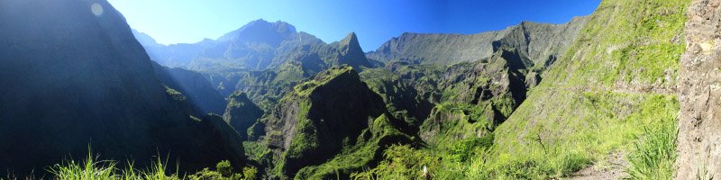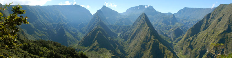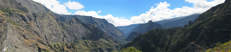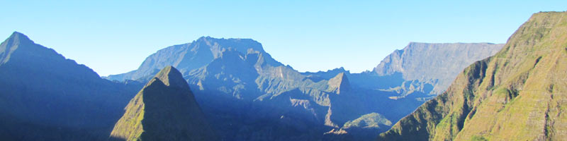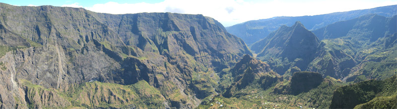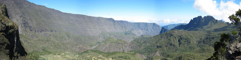 A gauche : Les flancs du Grand BénareAu centre : Une grande partie du Cirque de Mafate vers Marla.