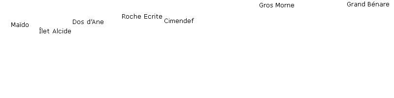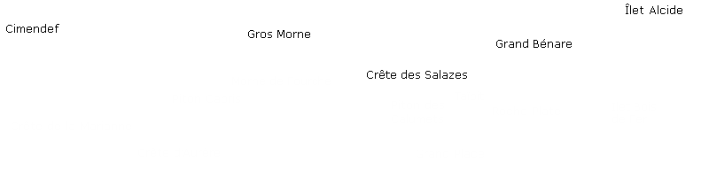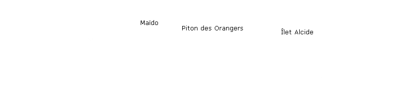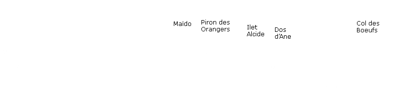 A gauche : L'Ilet NouryAu centre : La Crête de la Marianne et le Piton Cabris.