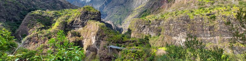 A gauche : Vers le Cirque de Cilaos et le Grand BénareAu centre : La Plaine des Tamarins