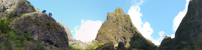 A gauche : Le Piton Béronne et le Rempart des OrangersAu centre : Le Piton Cabris et le Piton Tortue à Grand Place.