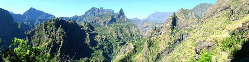 Au centre : Une grande partie du Cirque de Mafate vers Marla.