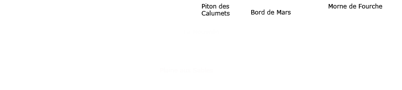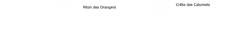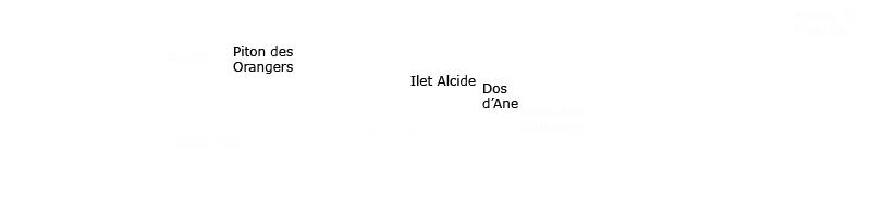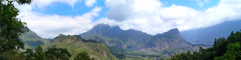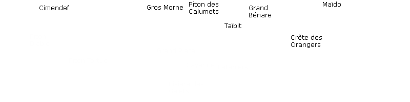 A gauche : Le CimendefAu centre : Le Gros Morne et le Piton des Neiges et le Piton Cabris.