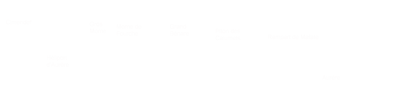 A gauche : Le CimendefAu centre : Le Piton des Calumets