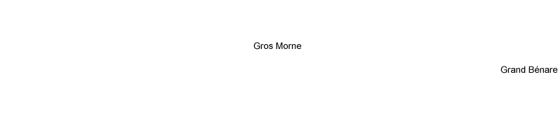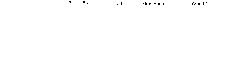 A gauche : Le CimendefAu centre : Le Gros Morne dans les nuages et le Morne de Fourche.