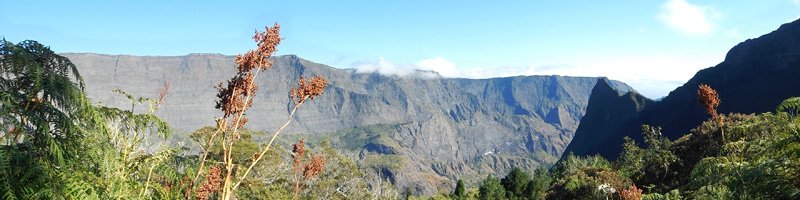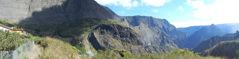 A gauche : Le rempart de MafateAu centre : Le Maïdo