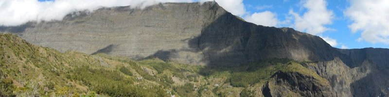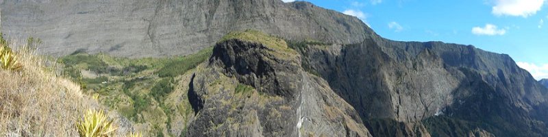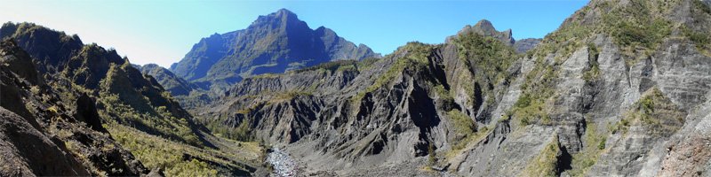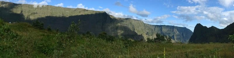 A droite : Le Rempart de Mafate à l'Ilet Alcide