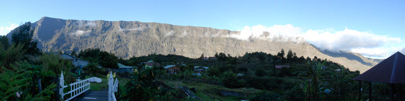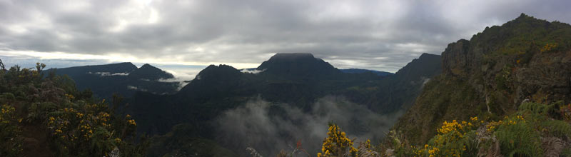 Au centre : Le rempart de Mafate et bientôt la Nouvelle