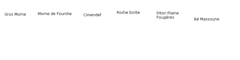 A gauche : Les flancs du Gros MorneAu centre : Au centre : le Piton d'Enchaing.