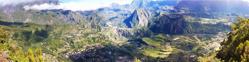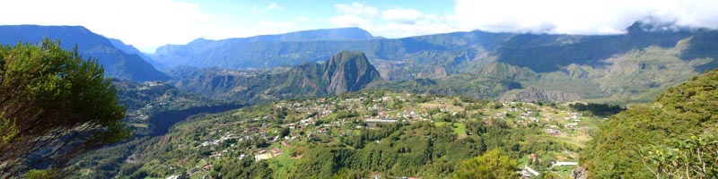 Au centre : Hell Bourg et le Cirque de Salazie.