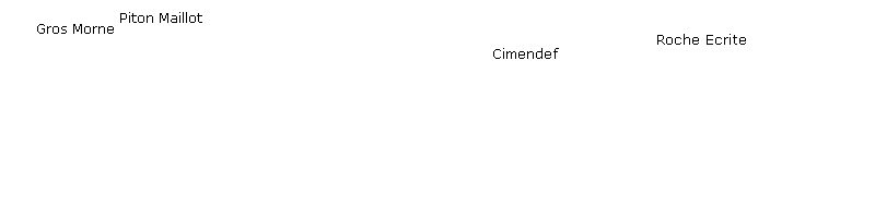 A gauche : l'Îlet à Vidot et le Gros Morne Au centre : le Piton d'Anchaing