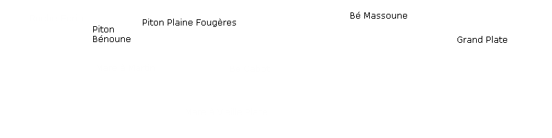 A gauche : Le Piton bé MassouneAu centre : Plus bas, la ravine des Fleurs Jaunes