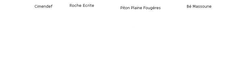 A gauche : Le Cimendef et les contreforts du Piton d'AnchaingAu centre : La Mare à Martin, la Roche Ecrite et Bé Cabot