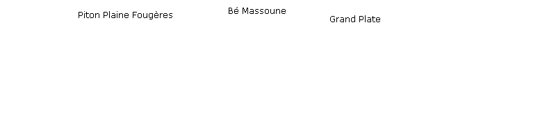 A gauche : Le Piton Bé MassouneAu centre : Le Piton d'Anchaing et le Mazerin - Grand Îlet